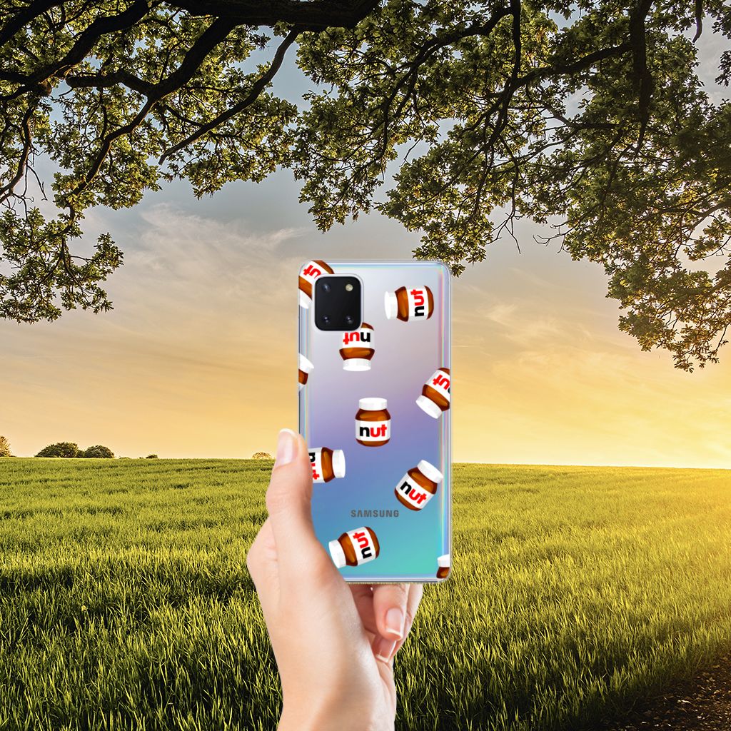 Ben je op zoek naar een uniek telefoonhoesje voor je Samsung Galaxy Note 10 Lite? Dan ben je bij B2C Telecom aan het juiste adres! Speciaal voor jou hebben we dit prachtige Nut Jar design in onze collectie hoesjes opgenomen. Het design wordt bedrukt op een Siliconen Case en is gemaakt van flexibel rubber. Het design wordt alleen aan de bovenkant van het hoesje bedrukt en de randen blijven transparant. Aan de zijkanten zijn uitsparingen gemaakt waardoor je met gemak alle knoppen en poorten kunt bedienen. Wij adviseren om dit hoesje in combinatie met een screenprotector te gebruiken voor een langere levensduur van je telefoon. Wil je dit design hoesje nog iets extra's geven? Voeg dan gratis je naam of een quote toe! Is dit design hoesje toch niet helemaal wat je zocht? Ontwerp dan zelf een hoesje in ons ontwerpprogramma.