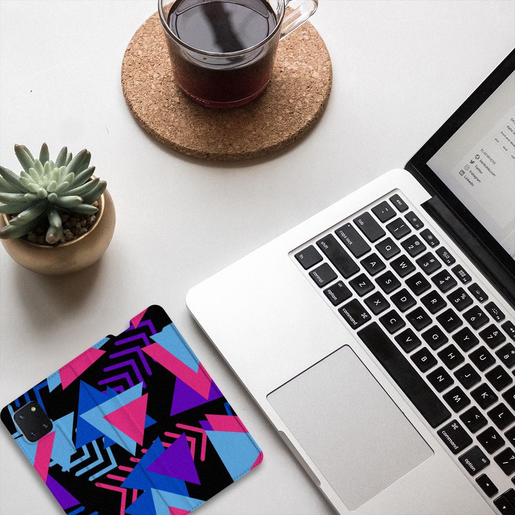 Dit fraaie hoesje met het design Funky Triangle is alles behalve eenvoudig en sober. Dat komt goed uit, want je hebt natuurlijk ook geen doorsnee telefoon gekocht. Mocht je dat wel hebben gedaan, dan wordt hij meteen speciaal als je een Samsung Galaxy Note 10 Lite Stand Case koopt voor een spotprijsje. Een ding is zeker: opvallen ga je beslist met dit hoesje met paarse, roze en blauwe driehoeken. Jij zult in je element zijn met dit design hoesje met paarse, roze en blauwe driehoeken, omdat het er schitterend uitziet en jouw telefoon perfect beschermt. Het smartphonehoesje beschermt jouw telefoon aan alle zijden en beschikt over 1 opbergvakje en een speciale standaard. Het hoesje wordt afgesloten met een magneet aan de binnenzijde. De houder aan de binnenzijde is van TPU. Alle zijden van de stand case worden bedrukt. De paarse, roze en blauwe driehoeken maken de case helemaal af.