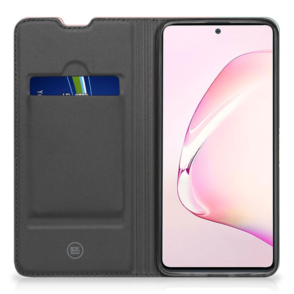 Vroeger werden vlaggen gebruikt om een boodschap over te brengen of een ridderorde aan te duiden. Tegenwoordig worden vlaggen gebruikt voor verschillende doeleinden. Een vlag kan worden gebruikt om te verwijzen naar een land, stad of beweging. Het staat symbool voor de nationaliteit van de mens. In onze collectie hebben wij alle Europese vlaggen opgenomen. De vlag wordt gedrukt op een Standcase voor de Samsung Galaxy Note 10 Lite en heeft een vakje voor pasjes. Het fijne aan dit hoesje is dat je het horizontaal als standaard neer kunt zetten. Door de magneten aan de binnenkant wordt het hoesje afgesloten. Ook bieden wij de mogelijkheid om gratis je naam toe te voegen om het hoesje helemaal af te maken. Wil je meer vrijheid om het hoesje helemaal naar eigen wens te maken? Ga dan verder met ontwerpen in ons unieke ontwerpprogramma.