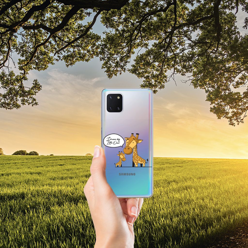 Ben je op zoek naar een uniek telefoonhoesje voor je Samsung Galaxy Note 10 Lite? Dan ben je bij B2C Telecom aan het juiste adres! Speciaal voor jou hebben we dit prachtige Giraffe design in onze collectie hoesjes opgenomen. Het design wordt bedrukt op een Telefoonhoesje met Naam en is gemaakt van flexibel rubber. Het design wordt alleen aan de bovenkant van het hoesje bedrukt en de randen blijven transparant. Aan de zijkanten zijn uitsparingen gemaakt waardoor je met gemak alle knoppen en poorten kunt bedienen. Wij adviseren om dit hoesje in combinatie met een screenprotector te gebruiken voor een langere levensduur van je telefoon. Wil je dit design hoesje nog iets extra's geven? Voeg dan gratis je naam of een quote toe! Is dit design hoesje toch niet helemaal wat je zocht? Ontwerp dan zelf een hoesje in ons ontwerpprogramma.