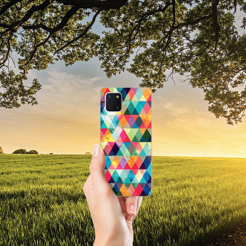 Van dit geruite design hoesje moet je een beetje houden. Maar als je het eenmaal in bezit hebt, ben je waarschijnlijk binnen no time verkocht. Het design heeft ruitjes in alle kleuren van de regenboog en door de grijze achtergrond kan het hoesje enigszins druk overkomen. Maar tegelijkertijd is dit de kracht van het hoesje. Met dit design hoesje Geruit zal je namelijk heel erg opvallen. Dit is voor veel vooral jonge smartphone gebruikers een belangrijk voordeel. Deze geruite print staat op een Samsung Galaxy Note 10 Lite TPU bumper. Dit zeer flexibele smartphone hoesje heeft alle nodige uitsparingen en past altijd in je broekzak. De case is aan de bovenkant bedrukt, de randen blijven transparant.