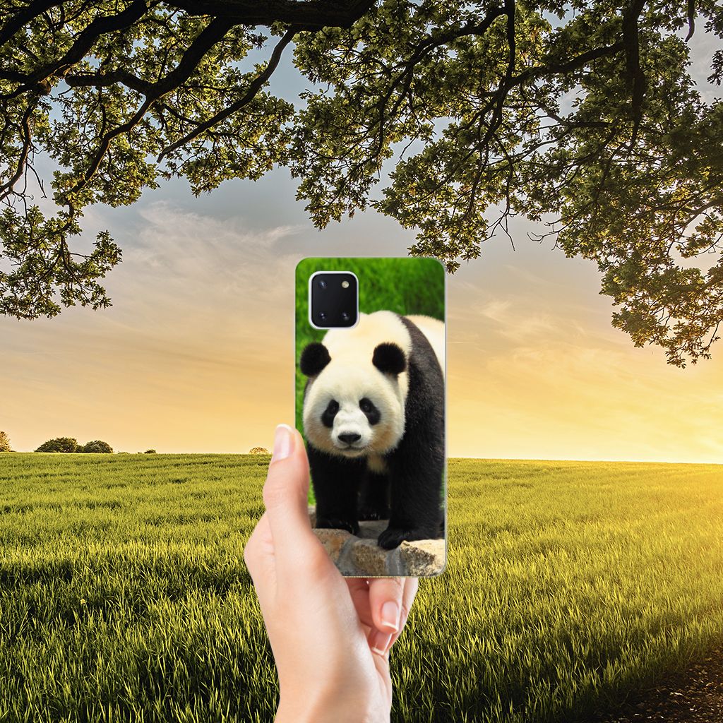 Ons design hoesje met afbeelding van een Panda is momenteel bijzonder populair. Wij denken te weten waarom dit zo is. De panda wordt door de bolle vorm van het gezicht in combinatie met de 'grote' zwarte ogen beschouwd als aandoenlijk en aaibaar. Dit maakt deze tpu case zeer geliefd onder zeer veel smartphonegebruikers. Een Samsung Galaxy Note 10 Lite TPU Hoesje met panda is een zeer effectieve en handige bescherming van de smartphone. De achterzijde van de case wordt volledig bedrukt met panda, terwijl de zijkanten doorzichtig blijven. Wij zijn ervan overtuigd dat jij jezelf populair maakt met dit hoesje, waardoor je weinig pandapunten zult scoren. De flexibele tpu case is gemaakt van onbreekbaar en buigzaam materiaal, dat verreweg de meeste schokken en stoten probleemloos opvangt.