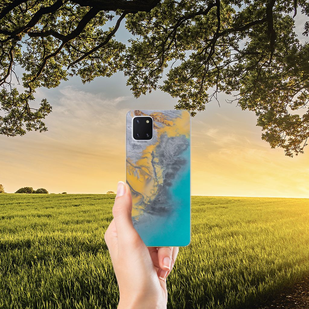 Deze Samsung Galaxy Note 10 Lite TPU Siliconen Hoesje met Marble Blue Gold is het waard om een blokje voor om te fietsen. Dit is echter helemaal niet nodig. Als je het hoesje met marmer blauw met goud nu bestelt heb je het supersnel in huis. Je kunt er bij wijze van spreken voor de brievenbus op blijven wachten. Je hebt diverse marmersoorten in veel verschillende kleuren. We hebben enkele mooie kleuren op design hoesjes gezet, zoals in dit geval marmer blauw met goud. Het marmer wordt bedrukt op de achterkant van de tpu case, die beschikt over alle nodige uitsparingen waardoor je alle knoppen en poorten van je smartphone kunt bedienen. Verder is de case met marmer blauw met goud gemaakt van zeer flexibel materiaal. De rijkheid aan kleuren en variaties in afwerking is een fraaie eigenschap van marmer. Dit tpu hoesje met marmer blauw met goud heeft ook veel schitterende eigenschappen en is de ideale bescherming voor jouw smartphone