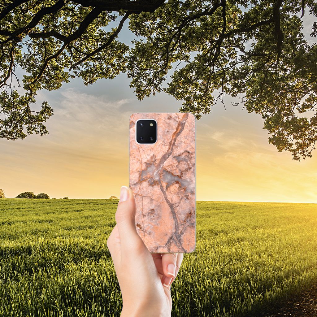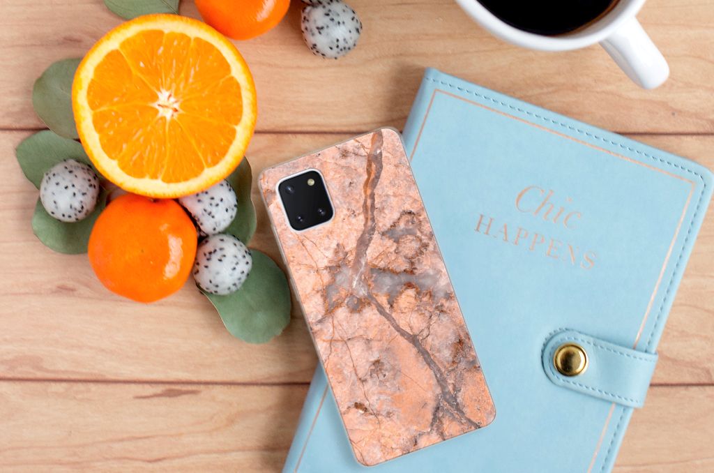 Dit design hoesje met Marmer Oranje is zeer geschikt voor jouw kostbare telefoon. Vanwege zijn prachtige lichtval en vastheid is marmer een zeer gewild bouwmateriaal. Wij kunnen inmiddels concluderen dat dit hoesje met oranje marmer ook zeer gewild is. Beloon jezelf en je telefoon met dit hele mooie Samsung Galaxy Note 10 Lite TPU Siliconen Hoesje. Naast het oranje marmer zijn er de diverse marmersoorten in een ruim kleurenpallet te krijgen. Deze tpu case met marmer in oranje wordt aan de achterzijde bedrukt. De case beschikt over opstaande randen en is gemaakt van onbreekbaar materiaal. De randen van de case in oranje marmer blijven transparant. Wij hebben onze designer veel vrijheid gegeven met het ontwerpen dit mooie hoesje. Het resultaat zie je terug in deze tpu case met oranje marmer, dat een hele goede bescherming is voor jouw smartphone. Des te mooi dat wij voor variatie hebben gekozen door een hoesje met oranje marmer aan de bieden.