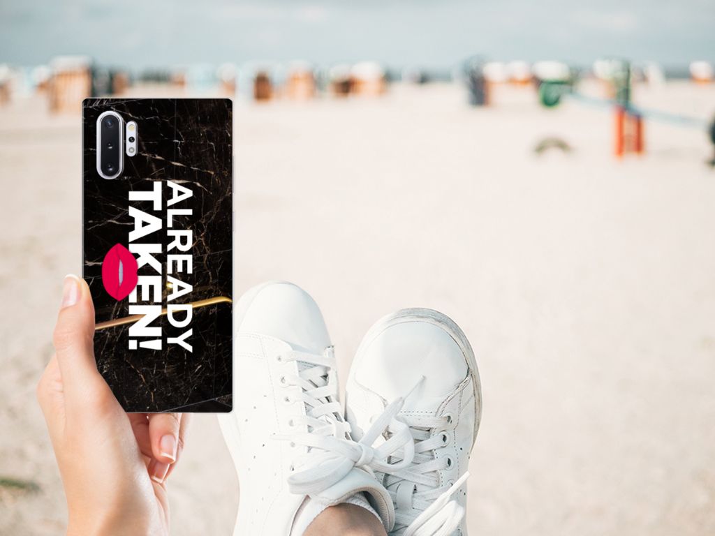 Met deze Samsung Galaxy Note 10 Plus Siliconen hoesje met naam met Already Taken Black tekst maak je duidelijk dat jouw smartphone een kostbaar bezit is, waar je zeer lang over wilt beschikken. Je telefoon neem je waarschijnlijk vaak ter hand, dus dan zal de boodschap als je over dit hoesje beschikt zeker weten overkomen. De TPU case wordt alleen aan de bovenkant bedrukt en is zeer flexibel. De randen van het hoesje blijven transparant. Wil je een eigen tekst op je hoesje zetten? Dit kan ook, met onze Phone Case Designer. Deze unieke ontwerpmodule is ook geschikt om het design uit te breiden met foto’s, effecten en patronen.