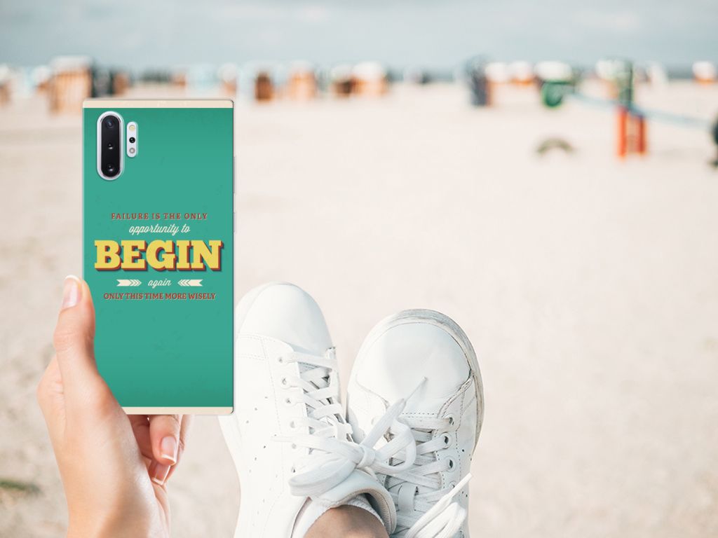 Ben je op zoek naar een uniek telefoonhoesje voor je Samsung Galaxy Note 10 Plus? Dan ben je bij B2C Telecom aan het juiste adres! Speciaal voor jou hebben we dit prachtige Quote Begin design in onze collectie hoesjes opgenomen. Het design wordt bedrukt op een Siliconen hoesje met naam en is gemaakt van flexibel rubber. Het design wordt alleen aan de bovenkant van het hoesje bedrukt en de randen blijven transparant. Aan de zijkanten zijn uitsparingen gemaakt waardoor je met gemak alle knoppen en poorten kunt bedienen. Wij adviseren om dit hoesje in combinatie met een screenprotector te gebruiken voor een langere levensduur van je telefoon. Wil je dit design hoesje nog iets extra's geven? Voeg dan gratis je naam of een quote toe! Is dit design hoesje toch niet helemaal wat je zocht? Ontwerp dan zelf een hoesje in ons ontwerpprogramma.