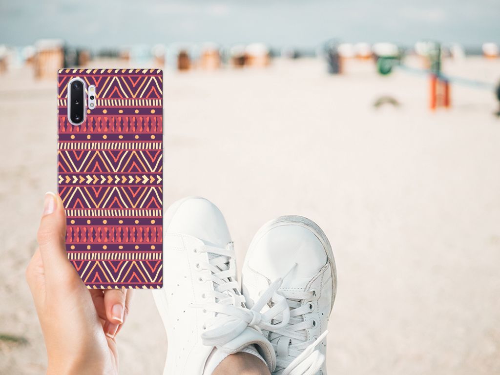 De Azteken leefden tussen 1200 en 1521 in het huidige Mexico. De mooie Aztec-patronen waar zij bekend om stonden, zien we nu nog op kleding, stoffen en tassen. Wie had toen kunnen bedenken dat we diezelfde prints honderden jaren later zelfs op een telefoonhoesje zouden vinden? Dit kleurrijke Aztec Purple-hoesje is perfect voor iedereen die een stukje geschiedenis bij zich wil dragen maar ook gewoon een mooi patroon op zijn hoesje wil. Dit vrolijke, kleurrijke ontwerp staat op een TPU bumper voor de Samsung Galaxy Note 10 Plus. TPU is flexibel en onbreekbaar. Zo is je telefoon aan de achterkant en de randen heel goed beschermd. De case is aan de bovenkant bedrukt, de randen blijven transparant.