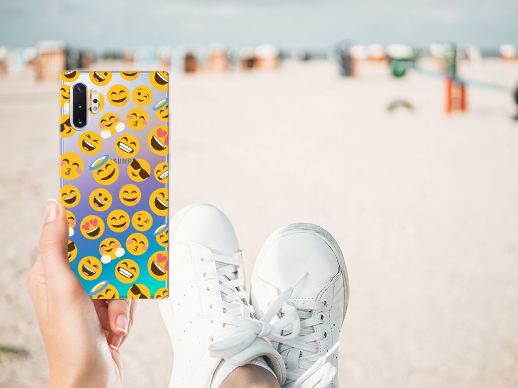 Je gebruikt ze waarschijnlijk dagelijks: emoji’s. Daarom hebben we besloten ze op een design hoesje te zetten. De kleurrijke, vaak gele emoticons maken chatberichten net wat spontaner. Dat hebben we allemaal te danken aan Japan, waar de emoji’s die we zo goed kennen vandaan komen. Ondertussen zijn er meer dan 1800! Deze passen natuurlijk niet allemaal op een Samsung Galaxy Note 10 Plus TPU bumper, maar we hebben de meeste gebruikte exemplaren erop gezet. Deze tpu case is voorzien van opstaande randen zodat het touchscreen van je telefoon beter is beschermd. Super handig. Het TPU zelf is zeer flexibel en is op maat gemaakt. We gebruiken emoji’s vaak om complete woorden te vervangen. Dit smartphone hoesje zegt dan ook meer dan duizend woorden kunnen. De tpu case wordt alleen aan de bovenzijde bedrukt met emoji’s. De zijkanten van de case worden niet bedrukt en blijven transparant.