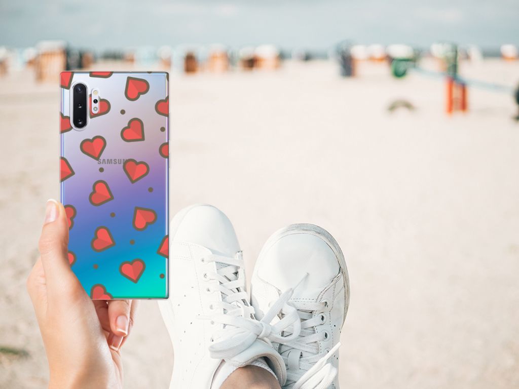 Met deze Samsung Galaxy Note 10 Plus TPU bumper met hartjes op een grijs met witte achtergrond maak jij een goede beurt als je dit cadeau geeft aan je vriend of vriendin. Bekroon je liefde voor elkaar met deze hele mooie tpu case, die jouw telefoon met name aan de achterkant en zijkanten goed beschermt. Dit is echt een prachtige manier om je telefoon te beschermen. Het tpu hoesje met design met Hearts is ook nog eens zeer praktisch, mede door het buigzame materiaal en de uitsparingen. Als je telefoon met het TPU hoesje uit je hand valt, stuitert het als het ware meteen weer terug in je hand en zal het scherm in tact blijven. De case heeft namelijk opstaande randen aan de voorkant. Alleen de bovenkant van de case wordt bedrukt met hartjes, de zijkanten zijn doorzichtig. Voor een habbekrats is dit hoesje met hartjes op een grijs met witte achtergrond te bestellen.