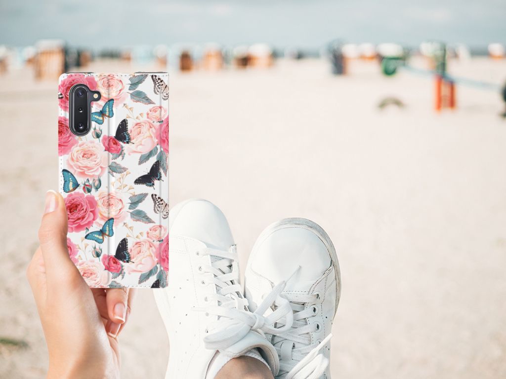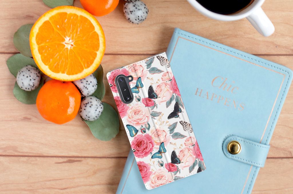 Ben je op zoek naar een uniek telefoonhoesje voor je Samsung Galaxy Note 10? Dan ben je bij B2C Telecom aan het juiste adres! Speciaal voor jou hebben we dit prachtige Butterfly Roses design in onze collectie hoesjes opgenomen. Het design wordt bedrukt op een Smart Cover en heeft een vakje aan de binnenkant voor een pasje. Het fijne aan dit hoesje is dat je het als standaard neer kunt zetten. Hierdoor geniet je nog meer als je een filmpje aan het kijken bent op je telefoon. Het hoesje wordt afgesloten door magneten aan de binnenkant. Wil je dit design hoesje nog iets extra's geven? Voeg dan gratis je naam of een quote toe! Is dit design hoesje toch niet helemaal wat je zocht? Ontwerp dan zelf een hoesje in ons ontwerpprogramma.