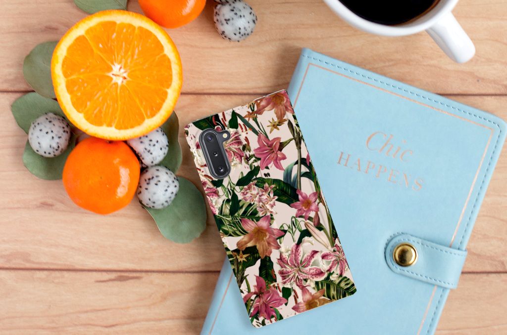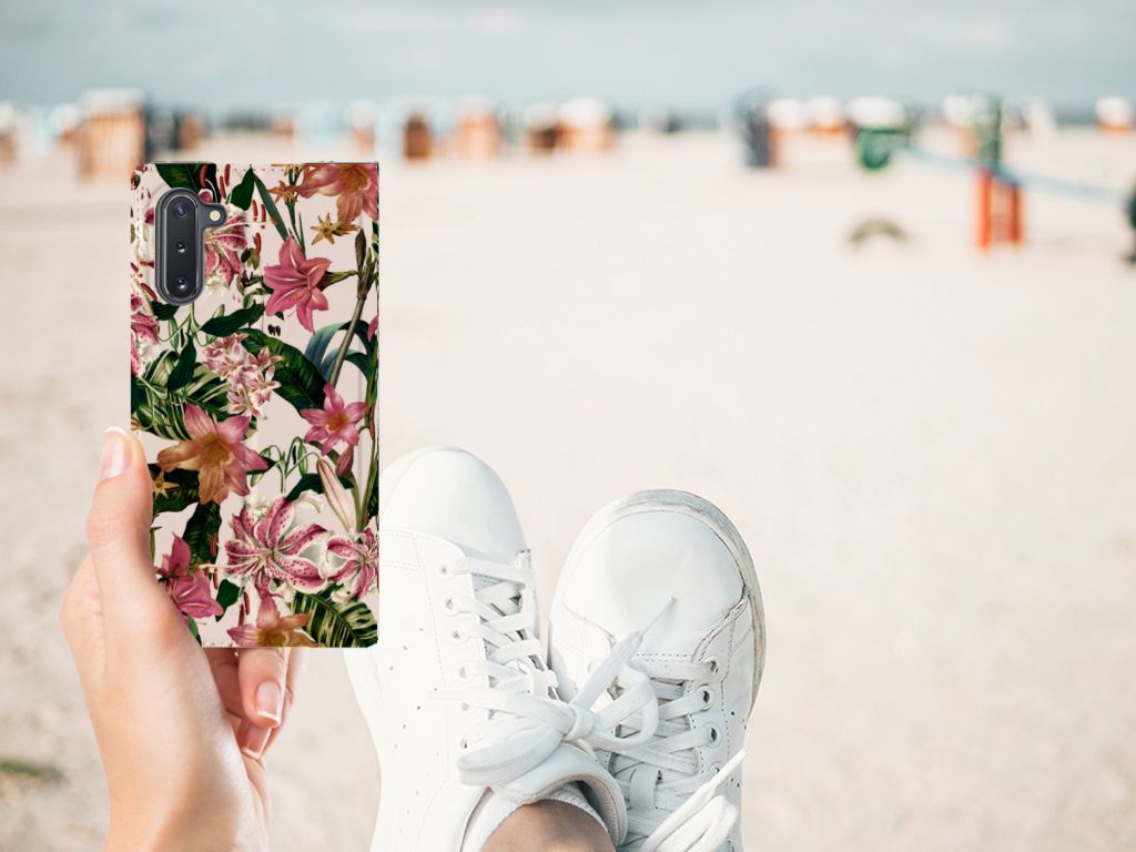Dit Flowers design is een zegen voor de mens en zijn smartphone. De paarswitte bloemen en groene bladeren op deze Samsung Galaxy Note 10 Smart Cover geven jouw smartphone een zeer sierlijke uitstraling. Je krijgt er meteen een goed gevoel bij als je aan het appen, mailen of aan het bellen bent. Valt dan je telefoon op de grond, dan zal er dankzij de stand case met paarswitte bloemen en groene bladeren geen schade ontstaan. Onze stand cases met paarswitte bloemen en groene bladeren bieden de allerbeste bescherming en zijn heel praktisch, wat blijkt uit onder meer het vakje aan de binnenkant en de handige standaard waarmee je de smartphone rechtop op tafel neer kunt zetten. De paarswitte bloemen en groene bladeren komen op alle zijden van de case te staan. Op deze stand case van leer en TPU (houder aan de binnenkant) kun je in no time zelf foto’s van jouw favoriete bloemen zetten.