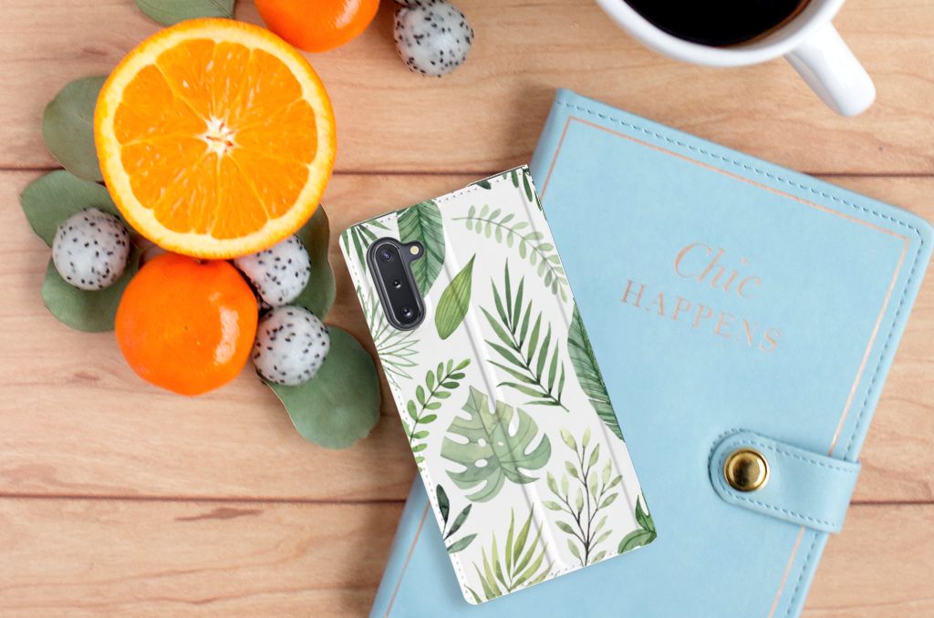 Je voelt je verbonden met de natuur als je kiest voor deze Samsung Galaxy Note 10 Smart Cover met print Leaves. De print bestaat uit verschillende groene bladeren en dit zorgt voor een fraai decoratief geheel. Met dit patroon van groene bladeren creëer je een frisse uitstraling voor jouw smartphone. Jij doet er verstandig aan om je telefoon te beschermen met dit design hoesje met groene bladeren, die staan op een stand case. Dit hoesje kenmerkt zich onder meer door het handige vakje aan de binnenzijde en de magnetische sluiting aan de binnenzijde. Voel jij jezelf gezond met een beeld van groene bladeren, dan is deze stand case met print een uitstekende optie. Het beschermt jouw telefoon aan alle zijden. Het TPU aan de binnenzijde klemt zich perfect om jouw smartphone. Kijk ook eens naar onze andere hoesjes met bladeren of misschien maak je zelf wel gewoon liefst je eigen hoesje met eigen foto’s van bladeren.