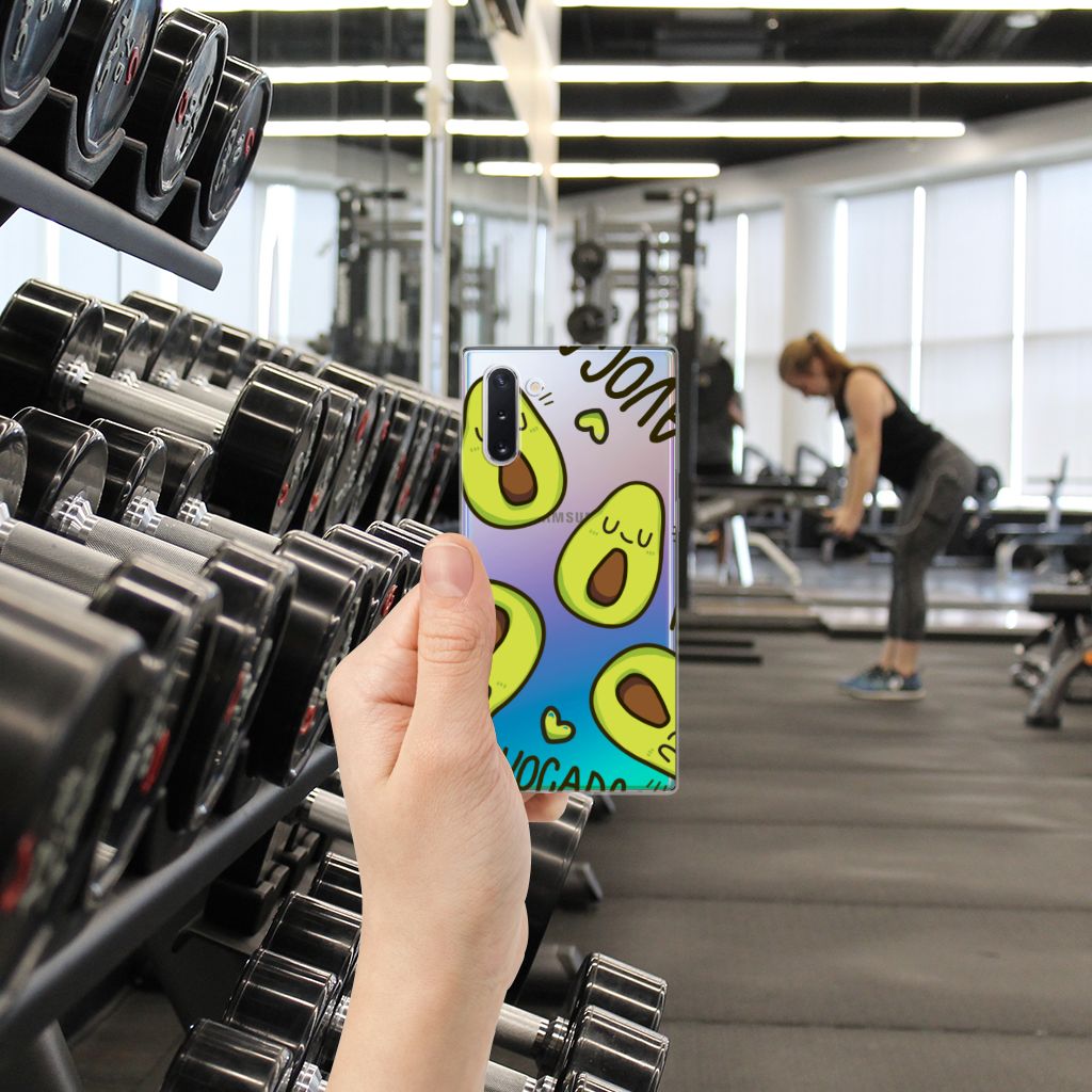 Avocado’s zijn niet alleen heel erg goed voor je, ze zijn ook super leuk op je telefoonhoesje. Dit unieke design vol schattige avocado’s zal jou en iedereen om je heen meteen opvrolijken. Nog een voordeel van dit design: deze avocado’s bederven nooit! Dit leuke Avocado Singing-ontwerp staat op een Telefoonhoesje met Naam voor de Samsung Galaxy Note 10. Met deze vrolijke groene vruchten op je hoesje val jij zeker op. TPU is flexibel en onbreekbaar. Zo is je telefoon aan de achterkant en de randen heel goed beschermd. De case is aan de bovenkant bedrukt, de randen blijven transparant. Het TPU-hoesje is perfect te combineren met een screenprotector, zo zijn je telefoon en je beeldscherm perfect beschermd.