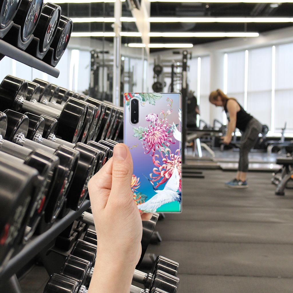 Verspreid over de hele wereld leven 19 soorten ooievaars. De spanwijdte – dat is de afstand van vleugeltip tot vleugeltip – van een volwassen ooievaar kan 2.50 meter bedragen. De gebieden waarin de ooievaar broedt, liggen in heel Europa, het Midden-Oosten, West- en Centraal-Azië en Noordwest-Afrika. Het ideale leefgebied van de ooievaar is een half open tot open landschap met veel afwisseling in grondgebruik en begroeiing. De begroeiing op dit design hoesje, in allerlei verschillende kleuren, zal niet alleen voor de ooievaars fraai zijn. Jij zult er zelf ook heel vrolijk van worden. Het in het oog springende design staat op een TPU Hoesje. Dit telefoonhoesje wordt alleen aan de bovenkant bedrukt en is zeer flexibel. De randen van het hoesje blijven transparant en worden niet bedrukt. Met dit hoesje past jouw Samsung Galaxy Note 10 altijd in je broekzak.