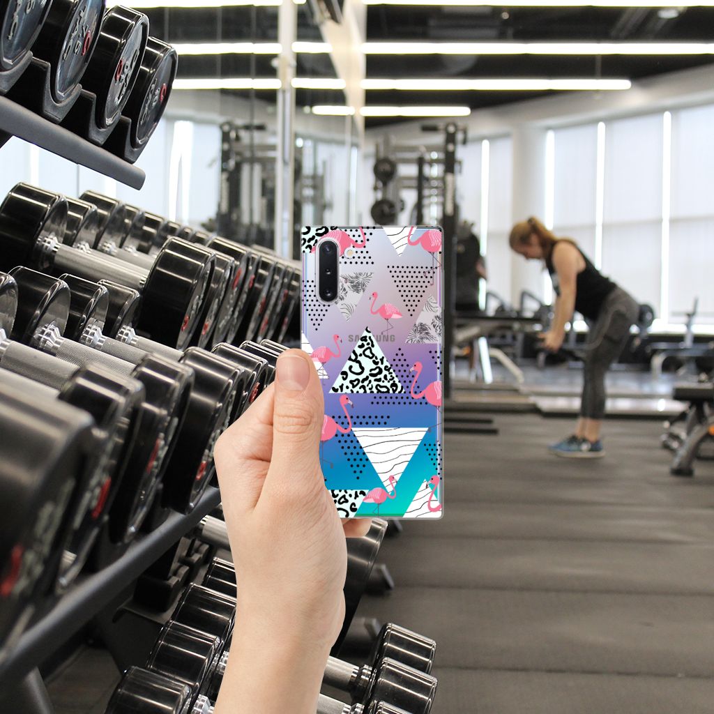 Een Samsung Galaxy Note 10 TPU Hoesje met Flamingo Triangle is in vele opzichten bijzonder. De rode flamingo op het hoesje komt oorspronkelijk uit het Caraïbische gebied. Stel dat je in deze regio vakantie aan het vieren bent, dan val je zonder meer op met dit hoesje met flamingo’s en driehoeken. Deze tpu case met flamingo’s en driehoeken beschermt je telefoon met name aan de achterkant en de zijkanten, is op maat gemaakt voor jouw smartphone en ligt altijd goed in je hand. De TPU case met flamingo’s en driehoeken en is ook zeer flexibel. De zijkanten blijven transparant.