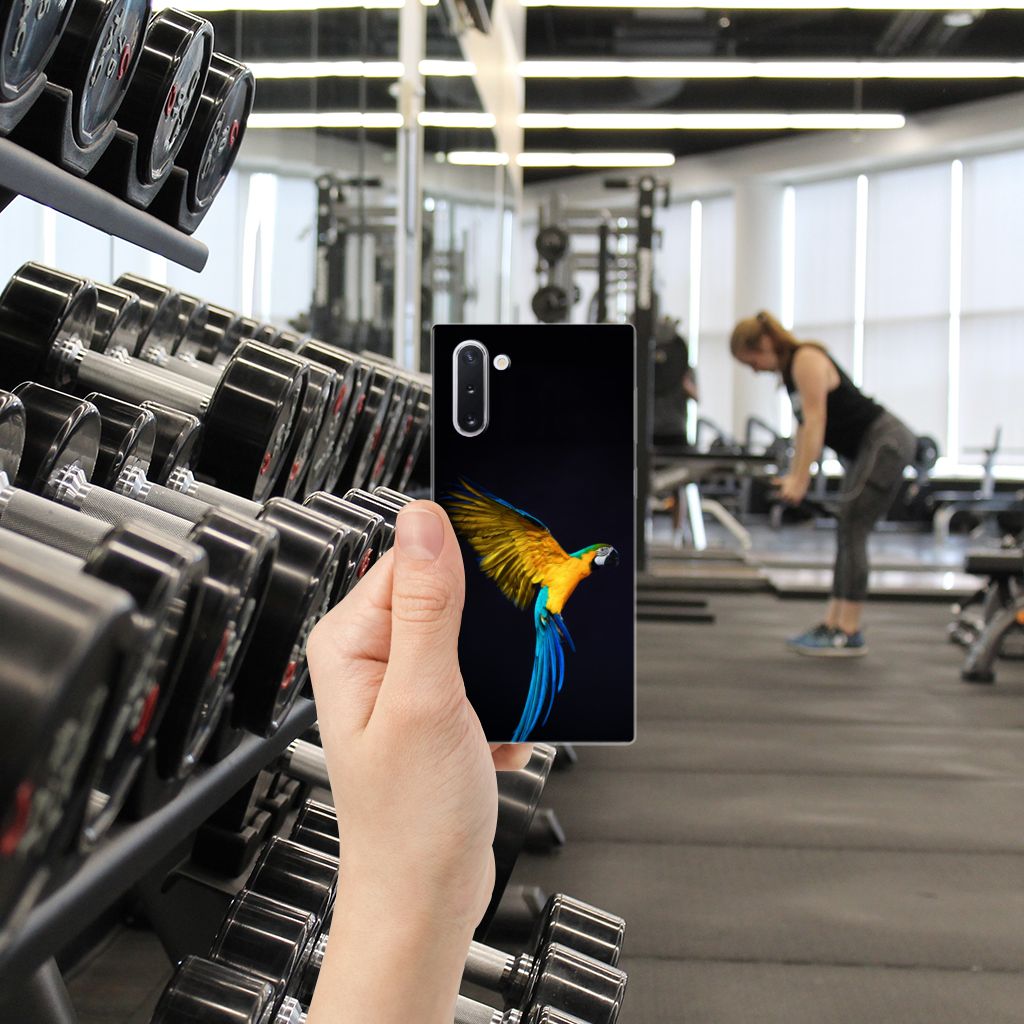 Dit design hoesje met Papegaai tegen een zwarte achtergrond is een zeer flexibele bescherming voor jouw smartphone. Dit komt vooral omdat deze print op een tpu case staat. Dit is een zeer buigzaam hoesje, dat de telefoon vooral aan de achterkant en zijkanten beschermt. De bovenkant van de Samsung Galaxy Note 10 TPU Hoesje wordt bedrukt met deze schitterende print. De zijkanten blijven doorzichtig. Papegaaien zijn erg sociale vogels die voldoende aandacht en gezelschap nodig hebben. Als je er voor kiest om een papegaai aan te schaffen, is het een goed idee om een koppeltje te nemen. Koop je meerdere tpu cases met een papegaai, dan ga je automatisch minder betalen per hoesje. Wij hanteren een systeem van bundelkorting. Dus koop dit hoesje met opstaande randen voor een spotprijs.