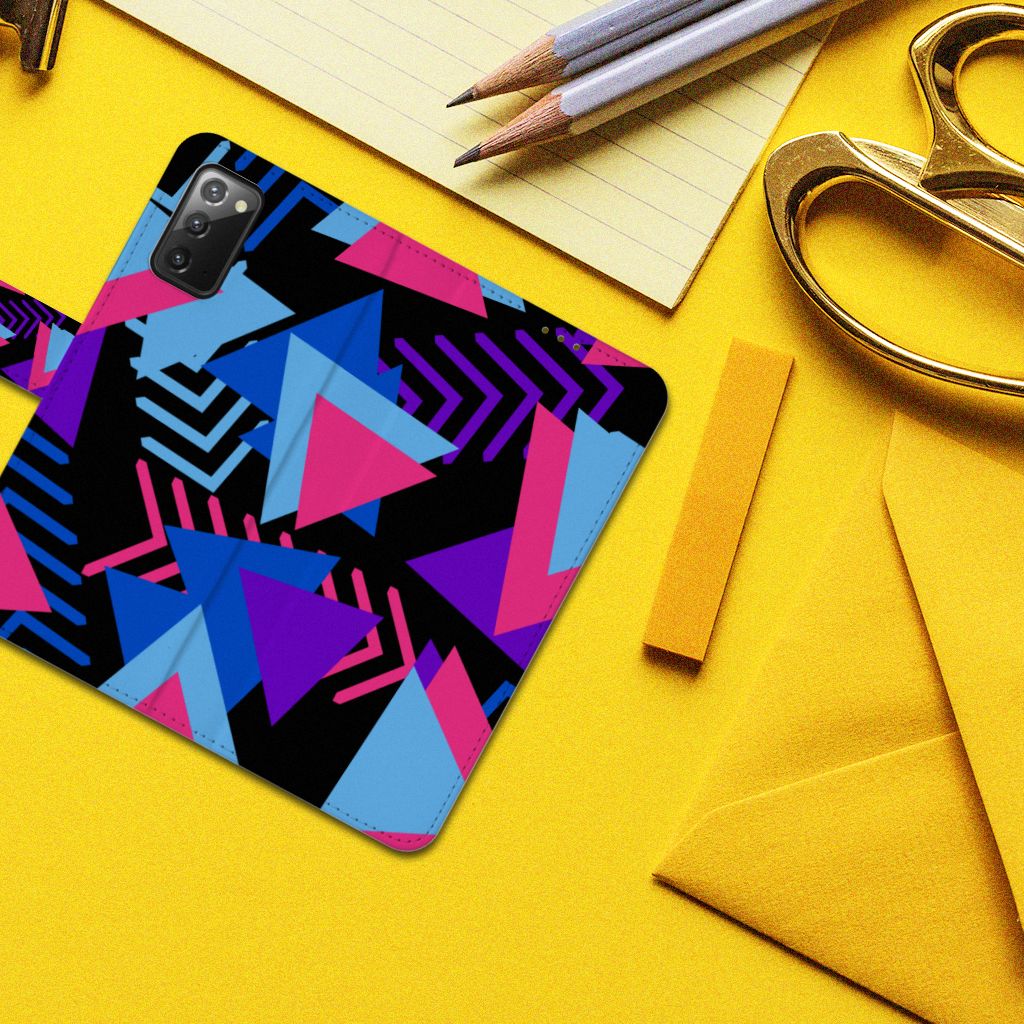 Dit fraaie hoesje met het design Funky Triangle is alles behalve eenvoudig en sober. Dat komt goed uit, want je hebt natuurlijk ook geen doorsnee telefoon gekocht. Mocht je dat wel hebben gedaan, dan wordt hij meteen speciaal als je een Samsung Galaxy Note 20 Book Case koopt voor een spotprijsje. Een ding is zeker: opvallen ga je beslist met dit hoesje met paarse, roze en blauwe driehoeken. Jij zult in je element zijn met dit design hoesje met paarse, roze en blauwe driehoeken, omdat het er schitterend uitziet en jouw telefoon perfect beschermt. Het smartphonehoesje beschermt jouw telefoon aan alle zijden en beschikt over verschillende houders voor pasjes en briefgeld. De case sluit perfect af met een lipje aan de buitenkant. De houder aan de binnenzijde is van TPU. Alle zijden van het hoesje worden bedrukt, inclusief het lipje. De paarse, roze en blauwe driehoeken maken de case helemaal af.