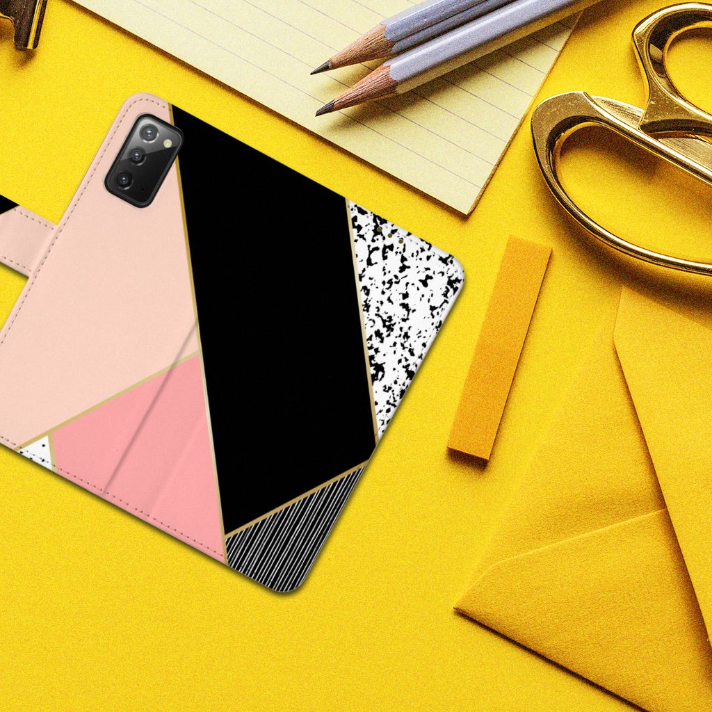 Samsung Galaxy Note 20 Bookcase met ruimte voor 3 pasjes Zwart Roze Vormen