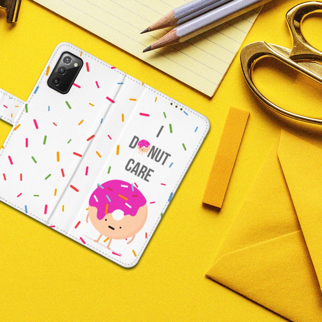Als je op zoek bent naar een design hoesje met een vrolijke en grappige uitstraling, zoek dan niet verder. Laat jij graag zien dat je een nonchalante houding hebt en houd je wel van een donut? Dan is dit design hoesje voor jou gemaakt. De Samsung Galaxy Note 20 Book Cover laat een donut zien met de woordgrap ‘I donut care’. Bovendien is het design van deze Bookcover uniek, hij is namelijk ontworpen door onze eigen ontwerper. Net als het ontwerp is ook de bescherming die dit telefoonhoesje biedt bijzonder. Het is een boekhoesje met een magnetisch sluitlipje. Als je de telefoon per ongeluk laat vallen, is er dus niets aan de hand en blijft hij intact. Op deze manier zul jij je nonchalante houding zeker behouden.