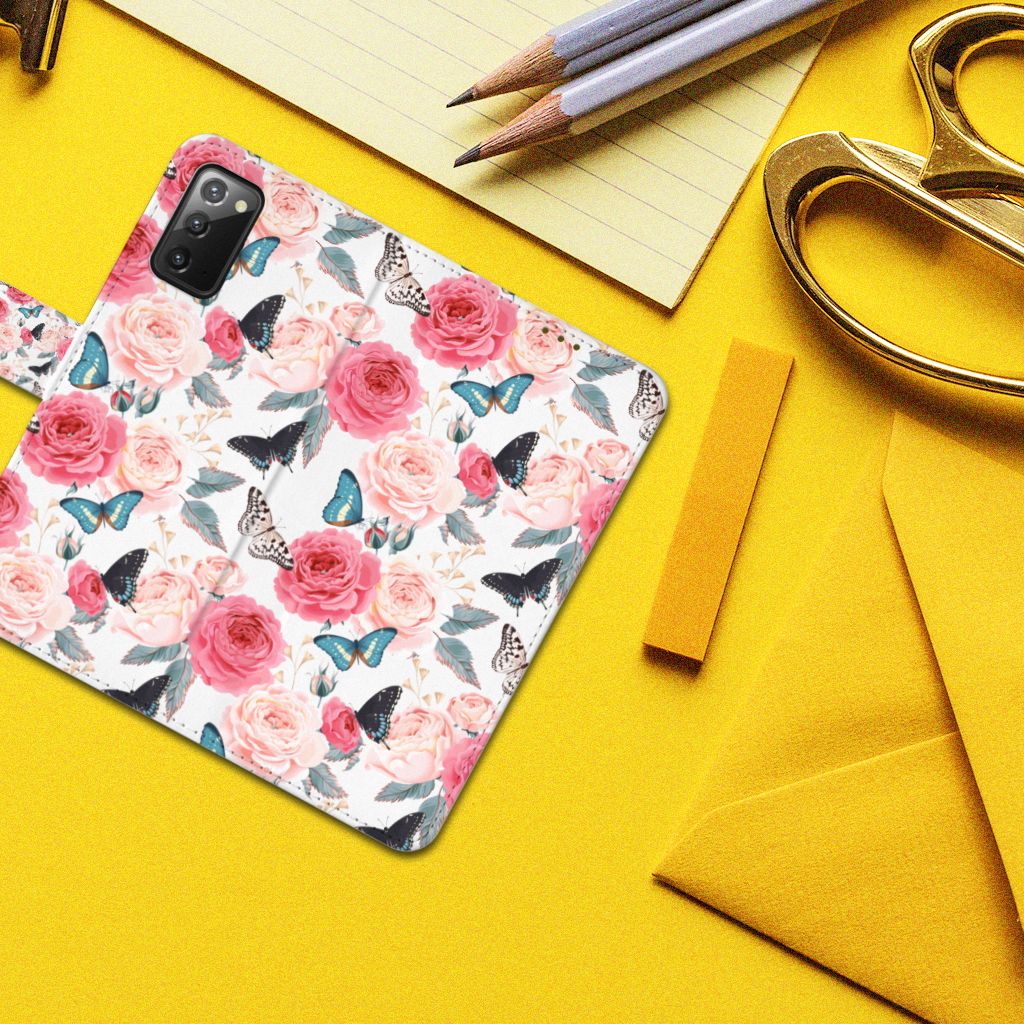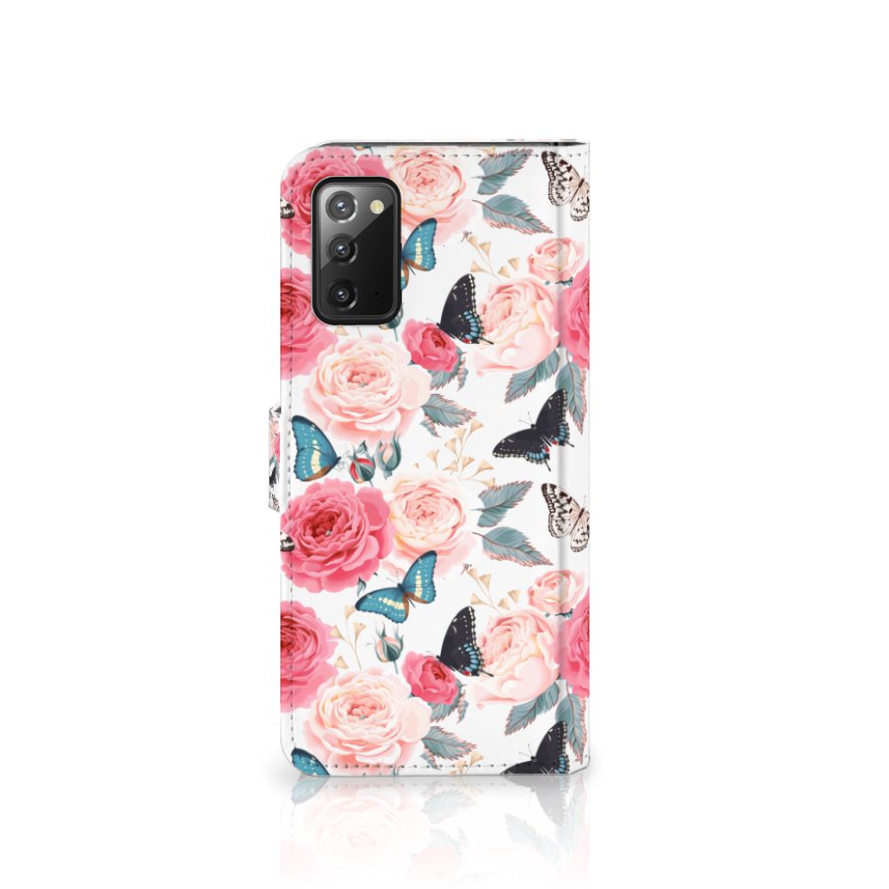 Samsung Galaxy Note 20 Hoesje gemaakt van TPU en kunstleer Butterfly Roses