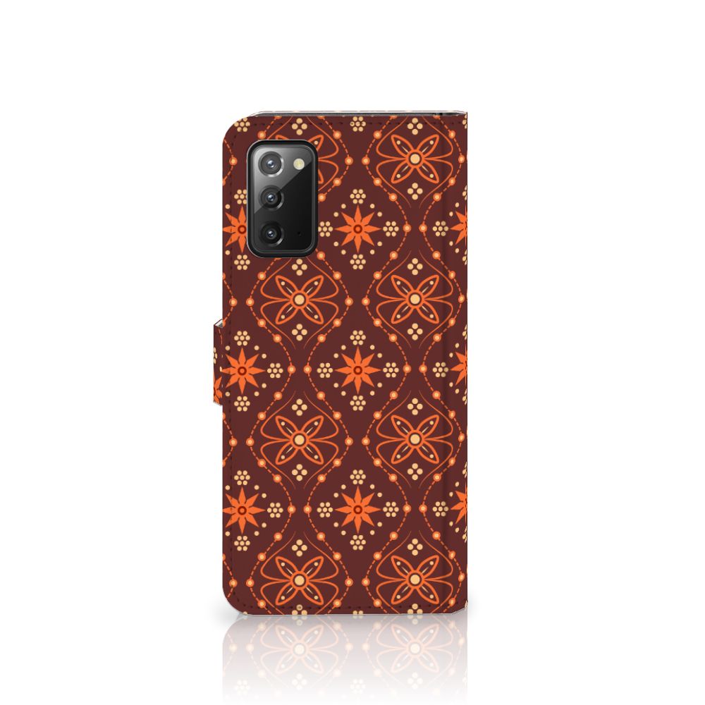 Batikken is een super oude kunstvorm. Met deze methode wordt een geweven stof met verf versierd. Er zijn zulke stoffen gevonden in het Midden-Oosten en Azië van meer dan tweeduizend jaar oud. Wie had kunnen bedenken dat we zo’n mooie batik-print duizenden jaren later zelfs op telefoonhoesjes zouden terugvinden? Dit Telefoon Hoesje in voor je Samsung Galaxy Note 20 heeft een prachtig symmetrisch patroon. Door de bruine en oranje kleuren doet het design een beetje retro aan en is het toch subtiel te noemen. Dankzij de pasjeshouder in het boekhoesje, heb je altijd je belangrijkste bezittingen bij je. Super handig en ook nog eens erg mooi. En bovenal is je telefoon meteen goed beschermd tegen krassen en beschadigingen. Dit Batik brown-hoesje heeft een lipje aan de buitenkant en een houder gemaakt van TPU.
