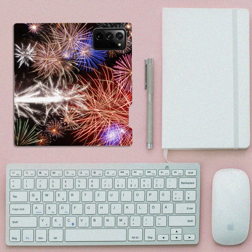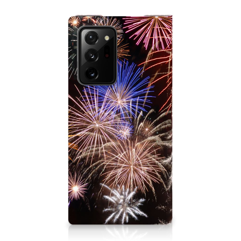 Deze Samsung Galaxy Note 20 Ultra Hippe Standcase levert gegarandeerd Vuurwerk op. Kijk alleen al eens naar de print van siervuurwerk, in zeer veel verschillende kleuren. Als je dit hoesje ziet kun je bijna niet geloven dat sommige gemeenten in Nederland overwegen om vuurwerk te verbieden. Er gebeuren weliswaar ongelukken mee, maar zoiets schitterends als op deze stand case met vuurwerk wil je toch gewoon niet missen. Bovendien beschermt dit hoesje jouw smartphone aan alle kanten. Alle zijden van deze case worden bedrukt en met een speciale standaard is het erg prettig om filmpjes te bekijken. De case wordt aan de binnenzijde met een magneet afgesloten en de houder aan de binnenzijde is van TPU. Onder alle omstandigheden zal deze case met 1 opbergvakje perfect functioneren, ook als je met nieuwjaar vuurwerk aan het afsteken bent. Zorg dan overigens wel dat je zelf ook voldoende afgeschermd bent van het vuurwerk.