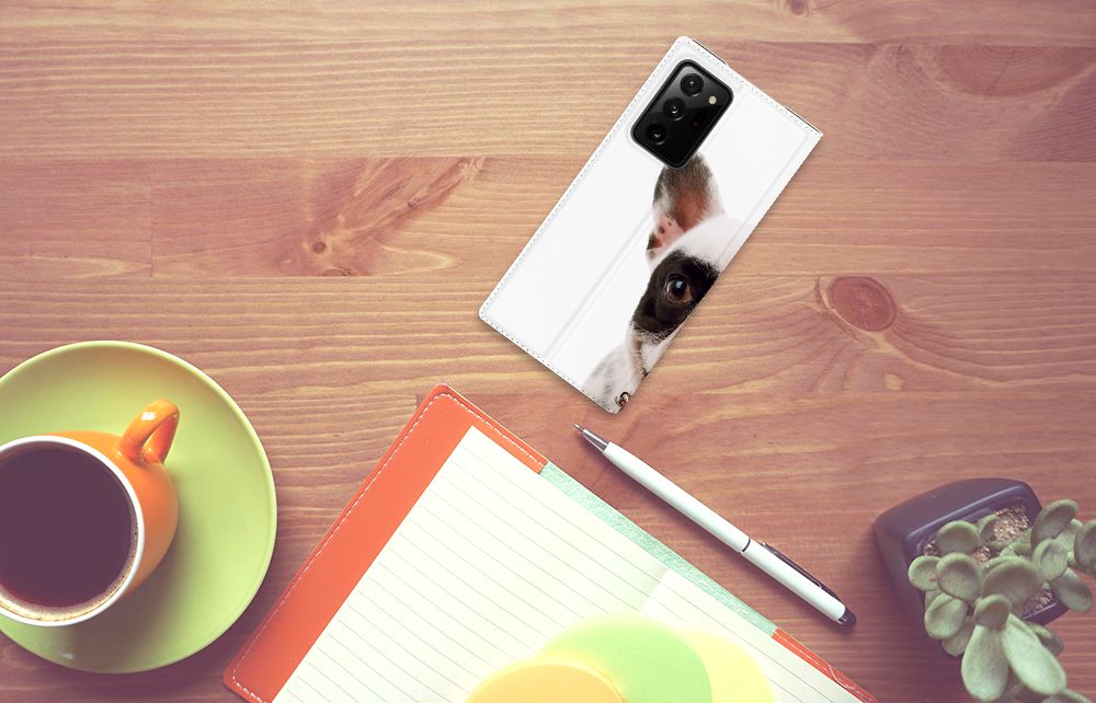 Honden zijn voor veel mensen hun lievelingsdier. Er zijn erg veel verschillende soorten honden, van allerlei verschillende rassen. We hebben een Franse bulldog op onze design hoesjes gezet. Onze smartphone hoesjes met Franse bulldog zien er zeer aandoenlijk uit. Deze Samsung Galaxy Note 20 Ultra Hoesje maken is niet alleen zeer praktisch vanwege het opbergvakje en de standaard, maar beschermt je smartphone ook nog eens optimaal. Op alle zijden van het design hoesje staat de Franse bulldog. De Franse bulldog is populair. Net als dit stand hoesje, dat aan de binnenzijde is voorzien van een magneet en een houder van TPU. Hij kan slecht tegen te weinig aandacht en een onvriendelijke behandeling. Verder is de Franse bulldog gebaat bij duidelijke regels. Anders kan de Franse bulldog zelf zeer onvriendelijk worden, wat je niet zou zeggen als je dit hoesje ziet.