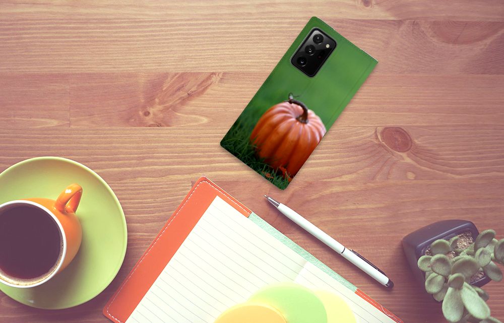 Een huisdier is goed voor je hart: de hoeveelheid stress in je lijf kan aanzienlijk verlagen als je een kat hebt rondlopen. Zelfs het aaien van een kat kan het stressniveau in je lijf al doen verlagen. De kat op dit smartphone hoesje is sowieso zeer aaibaar, gezien de blik en de houding van het dier. De herfstachtige bladeren en de pompoen geven dit stand hoesje met design een natuurlijke uitstraling. Jouw smartphone is met een Samsung Galaxy Note 20 Ultra Hoesje maken zeer duurzaam te noemen. Er is geen betere bescherming dan dit hoesje, dat ook nog eens 1 opbergvakje heeft en een standaard. Alle zijden van dit hoesje zijn bedrukt. Het hebben van een kat kan verzachtend werken, bijvoorbeeld na een heftige gebeurtenis. Het hoesje is aan de binnenzijde van TPU (houder).