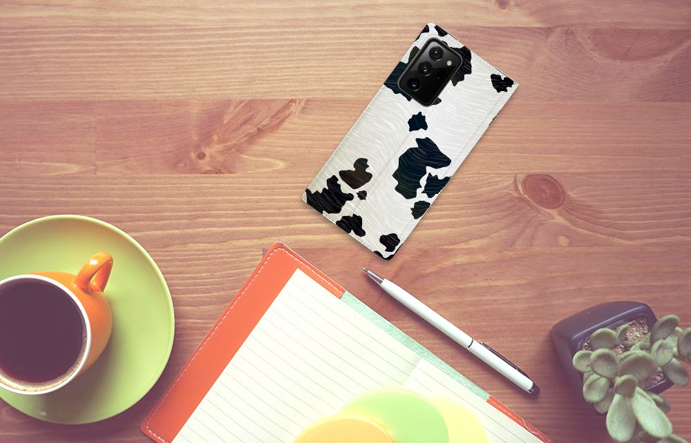 De vlekken op de huid van een koe hebben een camouflage functie. Met deze Samsung Galaxy Note 20 Ultra Hoesje maken met Koeienvlekken hoef je je geen zorgen te maken dat je smartphone schade oploopt. De koeienvlekken zetten we op een stand case op het moment dat jij je bestelling plaatst. Hierdoor krijgt jouw telefoon een print van koeienvlekken van zeer hoge kwaliteit. We bedrukken jouw gehele stand case met de vlekken van koeien. Je bankpas of creditcard kun je stoppen in het vakje aan de binnenkant van het telefoonhoesje met koeienprint. Roofdieren zijn niet geïnteresseerd in koeien dankzij de vlekken op hun huid. Deze beschermende werking heeft ook jouw hoesje met koeienprint.