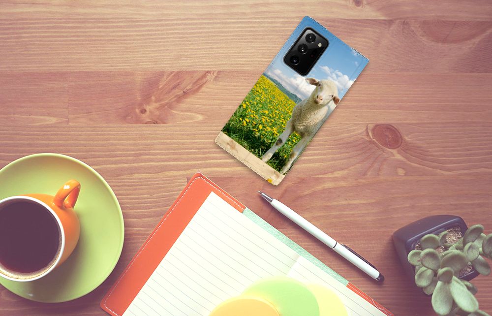 Altijd al een Samsung Galaxy Note 20 Ultra Hoesje maken met design van schapen willen hebben? Dan is dit je kans. Het is niet geheel duidelijk welk ras er op deze handige stand case staat afgebeeld. Er zijn namelijk wel 970 schapenrassen wereldwijd, waarvan hier vooral de heide- en weideschapen bekend zijn. Deze zijn overigens weer onderverdeeld in vlees- en melkschapen. Op deze stand case met pasjeshouder en magneet aan de binnenkant hebben we een oudere en wat jongere schaap staan. Bekende, en ooit bijna verdwenen rassen zijn het Drents heideschaap en het Mergellandschaap, een weideschaap. Andere rassen in Nederland zijn onder meer het Belgisch melkschaap, de zwartbles en de Texelaar. Kies voor een stand case met schapen en lammetjes als je een perfecte bescherming van je smartphone wenst. De houder aan de binnenzijde is van TPU.