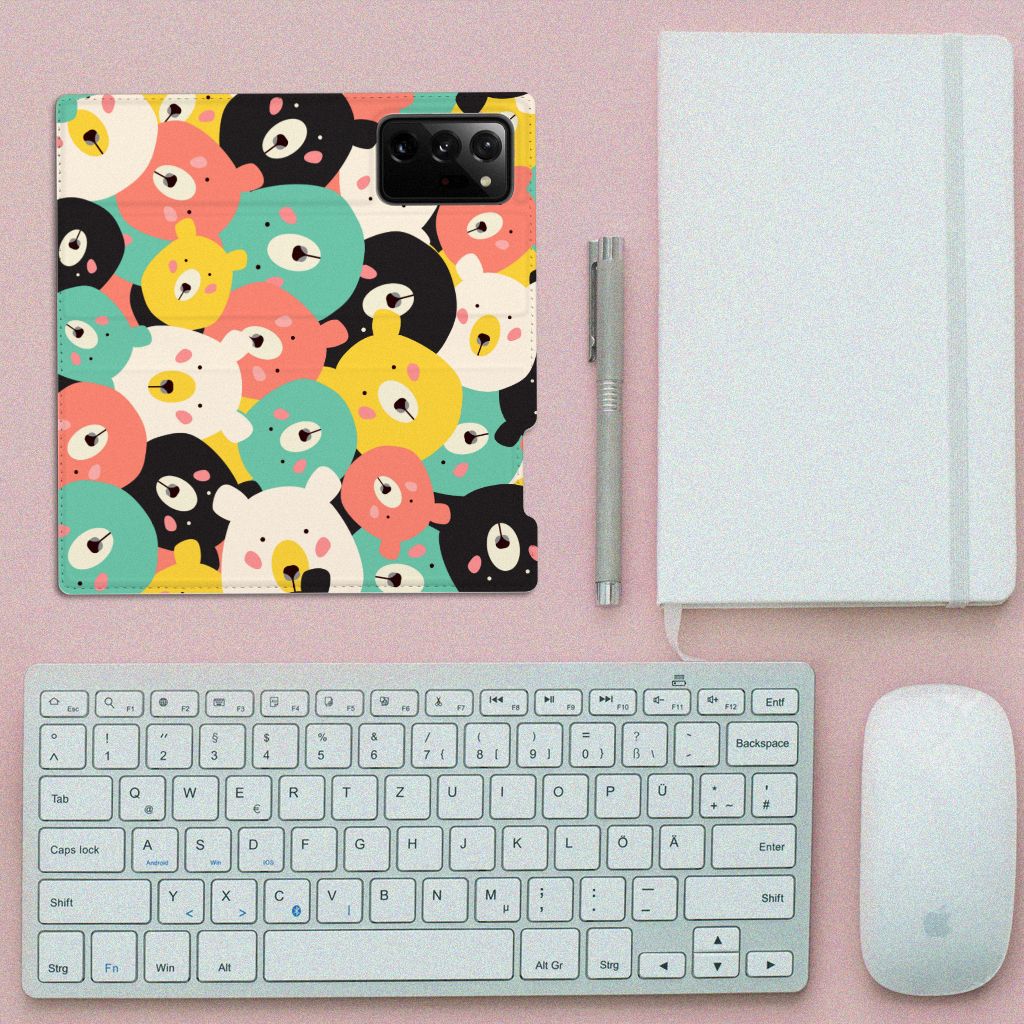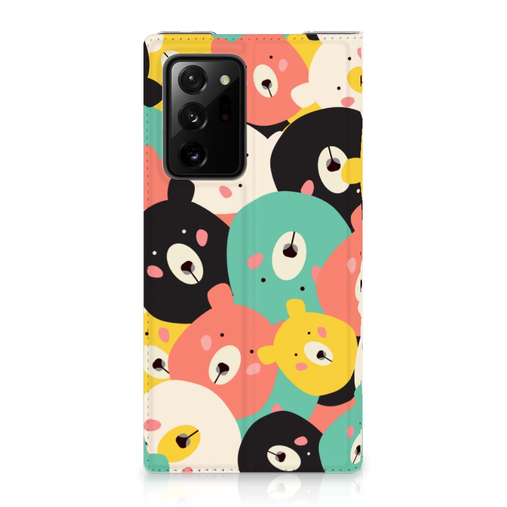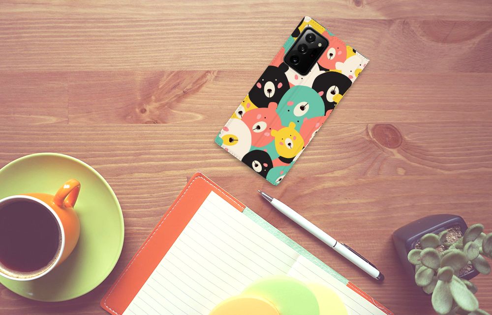 Op dit hoesje vind je een bereschattig ontwerp! Vergeef ons de woordgrap, maar hoe moeten we dit lieve ontwerp anders omschrijven? Op dit knuffelige ontwerp zie je leuke, getekende beertjes in vrolijke kleuren als geel, blauw en roze. Dankzij de contrasterende witte en zwarte beertjes vallen de felle kleurtjes nog meer op. Al met al is dit Magnet Case voor de Samsung Galaxy Note 20 Ultra een perfect hoesje voor de knuffelberen onder ons. Dit populaire smartphonehoesje met het Bears-design heeft één vakje voor een pasje of briefgeld en is aan alle zijden bedrukt. Met de standcase zet je je telefoon gemakkelijk neer, zodat je je handen vrij hebt als je bijvoorbeeld een video wilt kijken. De binnenkant van de standcase is van grijs PU-leer. Dat is fijn, omdat je daardoor niet snel vlekken ziet op je hoesje.