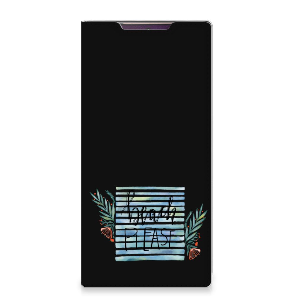 Dit design is perfect voor iedereen die geen genoeg kan krijgen van zon, zee en strand. Met dit Magnet Case voor de Samsung Galaxy Note 20 Ultra draag je de zomer altijd een beetje bij je. Dankzij de tekst ‘Beach Please’ ziet iedereen dat je een echte zonaanbidder bent. Het boho beach-ontwerp is vrolijk dankzij de subtiele bloemen en de leuke kleurtjes. Dit populaire smartphonehoesje heeft één vakje voor een pasje of briefgeld en is aan alle zijden bedrukt. Met de standcase zet je je telefoon gemakkelijk neer, zodat je je handen vrij hebt als je bijvoorbeeld een video wilt kijken. De binnenkant van de standcase is van grijs PU-leer. Dat is fijn, omdat je daardoor niet snel vlekken ziet op je hoesje.