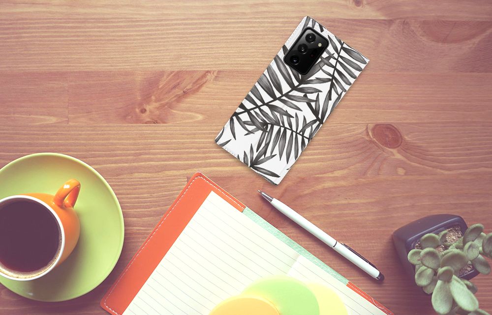 Ben je op zoek naar een uniek telefoonhoesje voor je Samsung Galaxy Note 20 Ultra? Dan ben je bij B2C Telecom aan het juiste adres! Speciaal voor jou hebben we dit prachtige Leaves Grey design in onze collectie hoesjes opgenomen. Het design wordt bedrukt op een Smart Cover en heeft een vakje aan de binnenkant voor een pasje. Het fijne aan dit hoesje is dat je het als standaard neer kunt zetten. Hierdoor geniet je nog meer als je een filmpje aan het kijken bent op je telefoon. Het hoesje wordt afgesloten door magneten aan de binnenkant. Wil je dit design hoesje nog iets extra's geven? Voeg dan gratis je naam of een quote toe! Is dit design hoesje toch niet helemaal wat je zocht? Ontwerp dan zelf een hoesje in ons ontwerpprogramma.