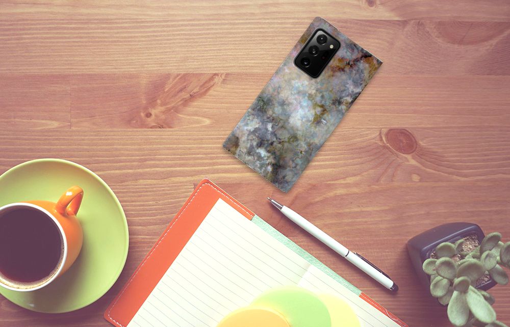Deze Samsung Galaxy Note 20 Ultra Standcase met Deze Samsung Galaxy Note 20 Ultra Standcase met marmer grijs is geen doorsnee product, maar onderscheidend in alle opzichten. Marmer is een zeer gewaardeerd bouwmateriaal, dit gaat zelfs terug tot de Romeinen, waardoor dit ook een symbolische waarde heeft op dit hoesje. Het stevige stand hoesje in een grijze kleur beschikt over een vakje voor een pasje of briefgeld en een magnetische sluiting aan de binnenzijde. Verder heeft de case met grijze marmer een houder van TPU. Marmer doet het goed op onze smartphone hoesjes. We hebben deze in zeer veel verschillende kleuren in ons assortiment zitten. Kijk maar eens naar dit boekhoesje met grijze marmer, dat de ideale bescherming voor jouw smartphone biedt. Je kunt het hoesje met grijs marmer ook gebruiken als basis voor je eigen ontwerp. Behalve het grijs kun je dan nog vele andere kleuren toevoegen. Om nog maar te zwijgen over die mooie foto’s en teksten van jezelf.