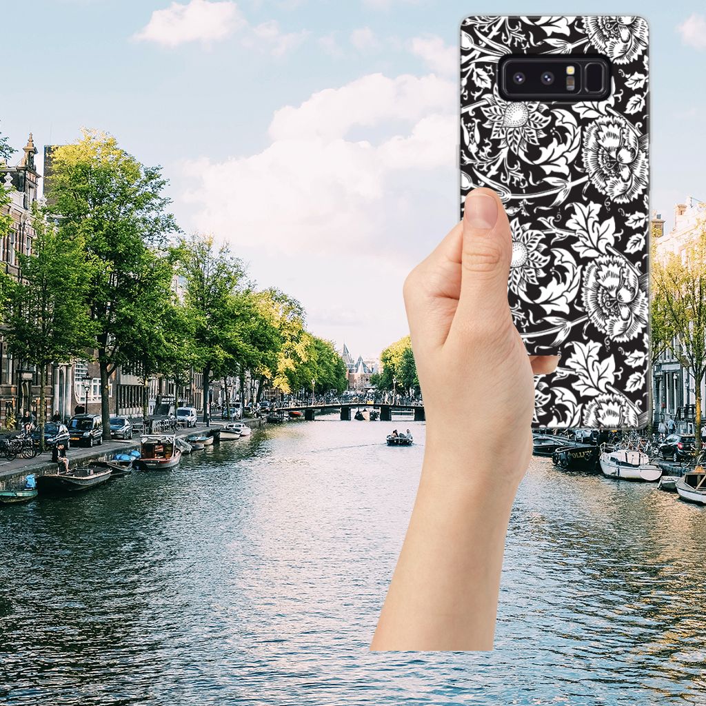 Bloemen raken nooit uit de mode! Een mooie bloemenprint op je telefoonhoesje dus ook niet. Dit ontwerp met mooie, enigszins abstracte bloemen is perfect voor de liefhebber van bloemen die geen felgekleurd hoesje wil. Vanwege de zwarte achtergrond en de witte bloemen heb je toch een opvallend en uniek design in handen. Dit black flowers-ontwerp staat op een TPU Case voor je Samsung Galaxy Note 8. TPU is een flexibel en onbreekbaar materiaal. Zo is je telefoon aan de achterkant en de randen heel goed beschermd. De case met het birds-design is aan de bovenkant bedrukt, de randen blijven transparant. Het TPU-hoesje is perfect te combineren met een screenprotector. Zo zijn je telefoon en je beeldscherm optimaal beschermt.