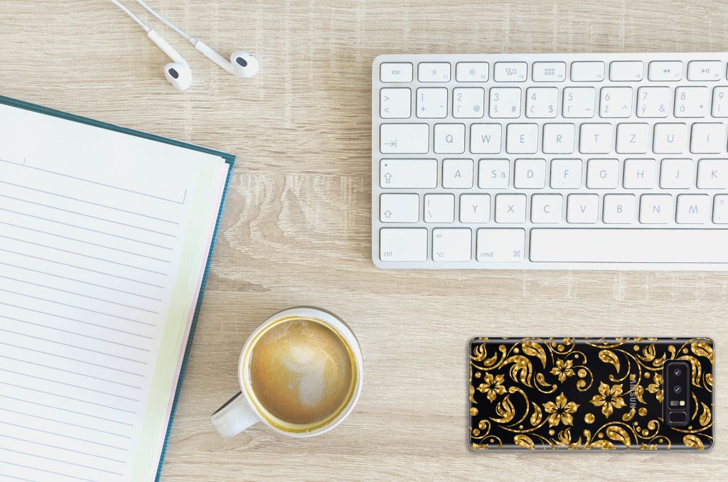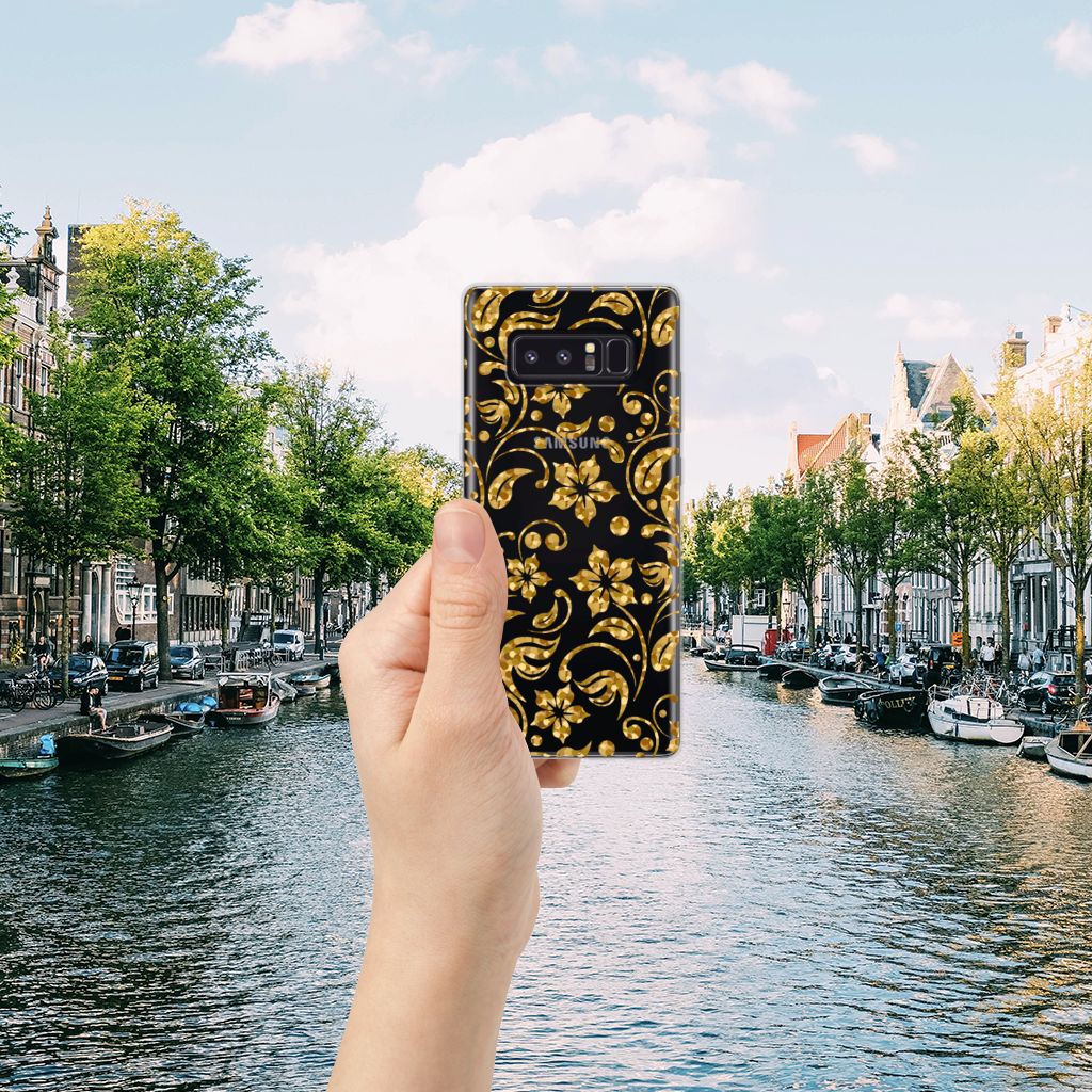 Ben je op zoek naar een uniek telefoonhoesje voor je Samsung Galaxy Note 8? Dan ben je bij B2C Telecom aan het juiste adres! Speciaal voor jou hebben we dit prachtige Gouden Bloemen design in onze collectie hoesjes opgenomen. Het design wordt bedrukt op een TPU Case en is gemaakt van flexibel rubber. Het design wordt alleen aan de bovenkant van het hoesje bedrukt en de randen blijven transparant. Aan de zijkanten zijn uitsparingen gemaakt waardoor je met gemak alle knoppen en poorten kunt bedienen. Wij adviseren om dit hoesje in combinatie met een screenprotector te gebruiken voor een langere levensduur van je telefoon. Wil je dit design hoesje nog iets extra's geven? Voeg dan gratis je naam of een quote toe! Is dit design hoesje toch niet helemaal wat je zocht? Ontwerp dan zelf een hoesje in ons ontwerpprogramma.