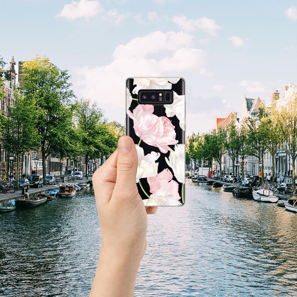 Een bosje bloemen doet een mens (en zijn smartphone) goed. De witte en roze bloemen op deze Samsung Galaxy Note 8 TPU Case geven jouw smartphone een zeer mooie uitstraling. Je wordt er ook meteen een stuk rustiger van als je aan het appen of aan het bellen bent. Valt dan je telefoon op de grond, dan zal er dankzij de tpu case met het design Lovely Flowers ontstaan. Helemaal niet als je er een screenprotector bij hebt gekocht. Onze tpu cases met roze en witte bloemen zien er zeer prettig uit en zijn heel praktisch, getuige onder meer de opstaande randen en het flexibele materiaal. Alleen de achterkant van de tpu case wordt bedrukt met roze en witte bloemen. Op deze tpu case kun je trouwens ook een eigen ontwerp zetten. In een paar simpele stappen ontwerp je zelf een stand case met daarop jouw favoriete bloemen.