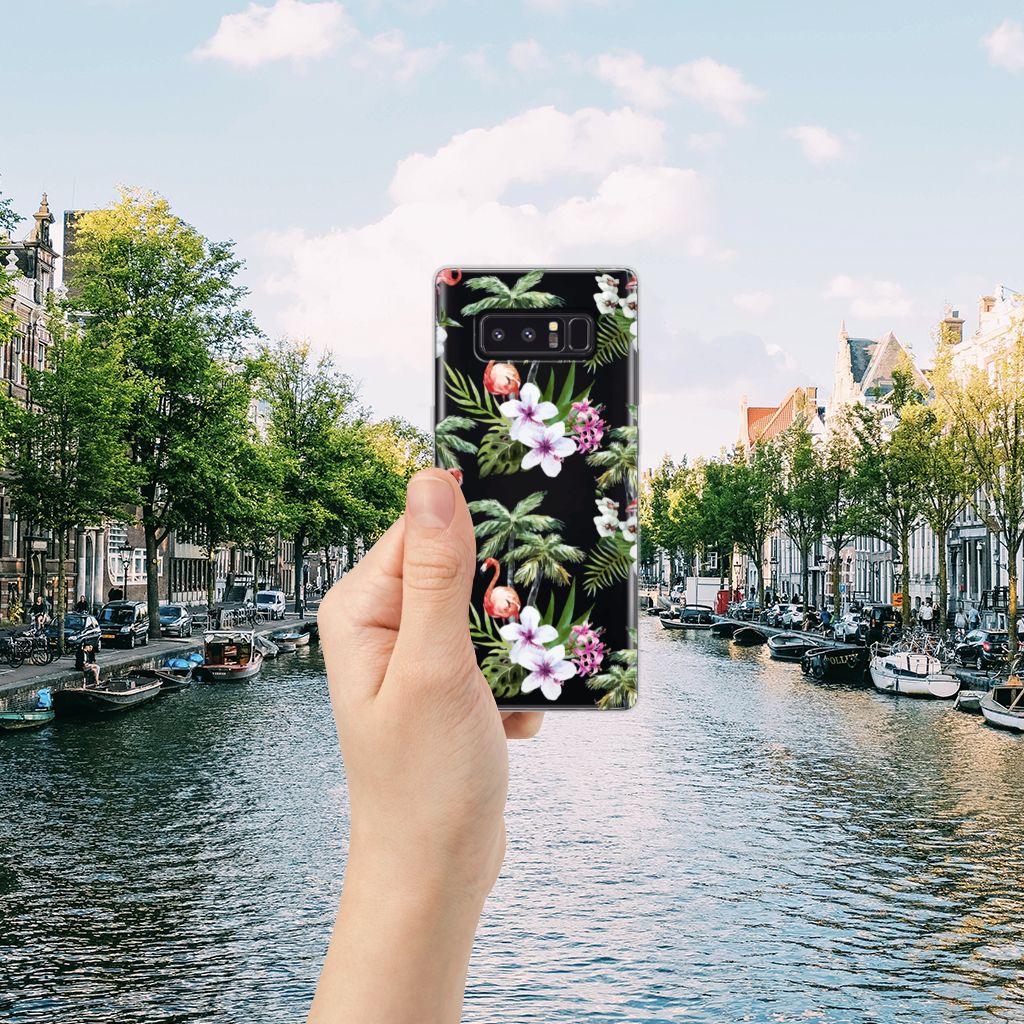 Een Samsung Galaxy Note 8 TPU Hoesje met Flamingo Palms is in vele opzichten bijzonder. De rode flamingo op het hoesje kent zijn oorsprong in het Caraïbische gebied. Stel dat je in deze regio vakantie aan het vieren bent, dan val je zonder meer op met dit hoesje met flamingo’s en palmbomen. Deze tpu case beschermt je telefoon met name aan de achterkant en de zijkanten. Deze tpu case met flamingo’s en palmbomen is op maat gemaakt voor jouw smartphone en ligt altijd goed in je hand. De TPU case met flamingo’s en palmbomen en is ook zeer flexibel. De zijkanten van case blijven transparant.