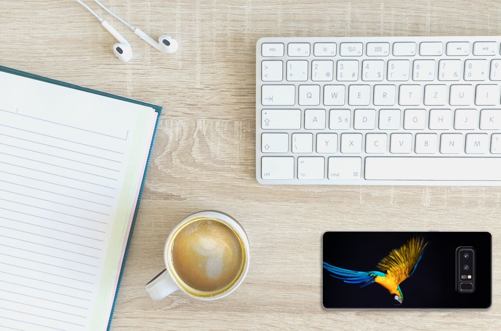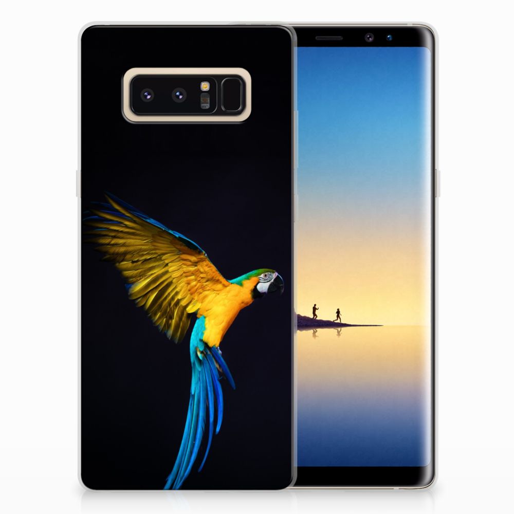 Dit design hoesje met Papegaai tegen een zwarte achtergrond is een zeer flexibele bescherming voor jouw smartphone. Dit komt vooral omdat deze print op een tpu case staat. Dit is een zeer buigzaam hoesje, dat de telefoon vooral aan de achterkant en zijkanten beschermt. De bovenkant van de Samsung Galaxy Note 8 TPU Hoesje wordt bedrukt met deze schitterende print. De zijkanten blijven doorzichtig. Papegaaien zijn erg sociale vogels die voldoende aandacht en gezelschap nodig hebben. Als je er voor kiest om een papegaai aan te schaffen, is het een goed idee om een koppeltje te nemen. Koop je meerdere tpu cases met een papegaai, dan ga je automatisch minder betalen per hoesje. Wij hanteren een systeem van bundelkorting. Dus koop dit hoesje met opstaande randen voor een spotprijs.