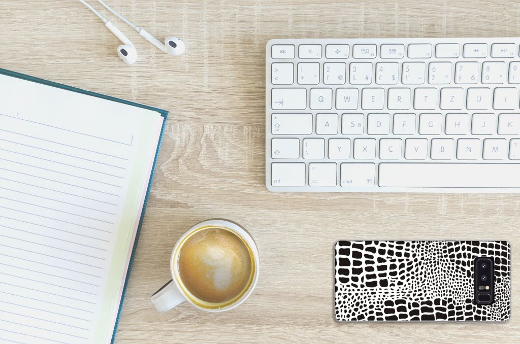 Deze tpu case met zwarte en witte Slangenprint kunnen wij zeer exclusief noemen. Zeker als je er nog een bijzondere tekst van jezelf aan toevoegt, zoals je eigen naam in een sierletter. Jouw tpu case krijgt dan een persoonlijke uitstraling, net nog een beetje specialer dan dit hoesje met zwarte en witte slangenprint. Wat niets afdoet van de exclusiviteit van deze tpu case met zwarte en witte slangenprint. Ben jij toe aan een stoer en opvallend Samsung Galaxy Note 8 TPU Hoesje? Pak dan dit design met print van slangenhuid als basis. Het tpu hoesje is zeer flexibel en wordt alleen aan de bovenzijde bedrukt. De randen van dit flexibele hoesje blijven doorzichtig. Jij bent ervan verzekerd dat jouw smartphone tegen een stootje kan met dit tpu hoesje met zwarte en witte slangenprint.