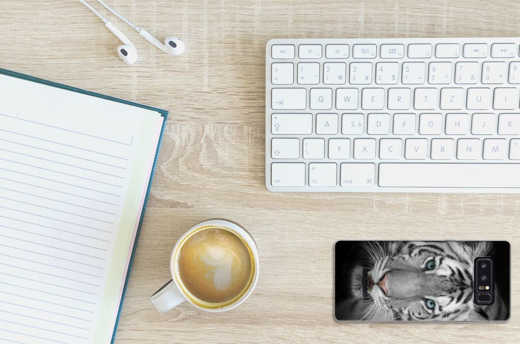 Omdat de Witte Tijger zo bijzonder is, zijn wij bereid deze voor zeer lage kosten op een tpu case te zetten. Dit kunnen we zo goedkoop doen omdat we het drukwerk in eigen beheer doen. Witte tijgers leefden lange tijd in de bossen van India, Bangladesh, Nepal, Bhutan en China en kunnen wel 257 kilo wegen. Dit zwaargewicht kunnen we bedrukken op verschillende soorten hoesjes, zoals deze tpu cases. Deze Samsung Galaxy Note 8 TPU Hoesje kan exclusief in het bezit van jou komen. Zeker als je er zelf nog unieke teksten en/of beelden aan toevoegt. Het tpu hoesje is zeer flexibel en wordt alleen aan de bovenzijde bedrukt. De randen van dit flexibele hoesje blijven doorzichtig. Tegenwoordig zijn witte tijgers alleen in gevangenschap te bewonderen. Jij zorgt voor een goede bescherming van je smartphone met dit design hoesje met witte tijger.