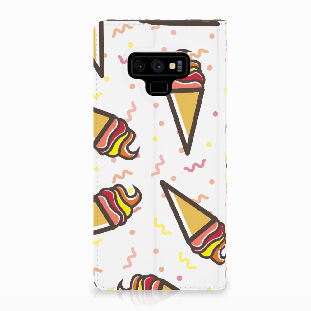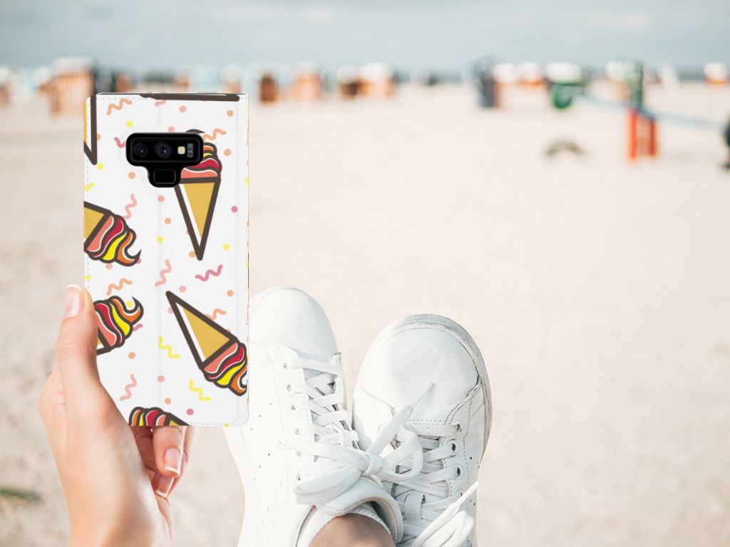 Een vrolijke Samsung Galaxy Note 9 Flip Style Cover met daarop verschillende ijsjes. Als je daar geen zomers gevoel meer van krijgt, weten wij het ook niet meer. De zomer en ijsjes zijn onlosmakelijk met elkaar verbonden. Tijdens een bezoekje aan het strand mag een lekker ijsje bijvoorbeeld niet ontbreken. Een design hoesje met lekkere Icecream print past daar natuurlijk ook ontzettend goed bij. Jouw telefoon is helemaal beschermd met een stand case met ijsjes design. De aankoop van deze case is een heerlijke investering, die zich gegarandeerd terugbetaalt. Alle zijden van dit hoesje worden bedrukt met ijsjes. De case heeft een speciale standaard en de houder aan de binnenzijde is van TPU. Onder alle weersomstandigheden zal deze case met opbergvakje perfect functioneren, ook in de zomer met een ijsje in je hand. Dit smaakvolle hoesje is zeer goedkoop te bestellen en wordt zeer snel bezorgd.