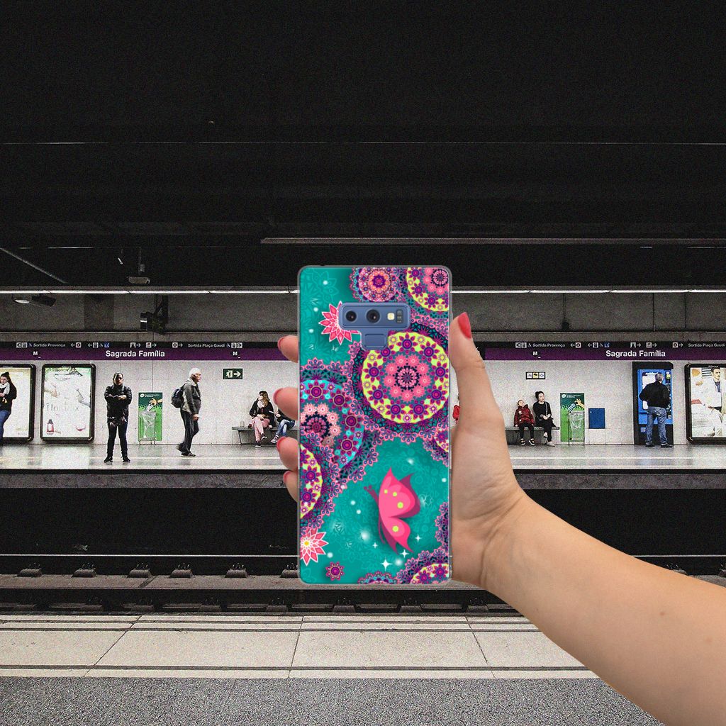 Deze opvallende Samsung Galaxy Note 9 Hoesje maken met Cirkels en Vlinders is een ware eyecatcher. De meeste vlinders hebben een onopvallende vleugelkleur en dat kun je van de soort op dit hoesje ook zeker wel zeggen. Wij kunnen deze opvallende vlinders en cirkels op een zeer handige tpu case zetten. Deze hoesjes zijn gewild omwille hun flexibiliteit. Met onze geavanceerde printer zetten we de print van opvallende vlinders en cirkels op de achterkant van het hoesje. De case met vlinders en cirkels blijft aan de zijkanten doorzichtig, zodat je maximaal het design van je smartphone behoudt. Verder is je telefoon natuurlijk goed beschermd met deze tpu case met print van blauwe vlinders. De bovenkant wordt bedrukt, de zijkanten niet. Met een screenprotector bescherm je ook het scherm maximaal.