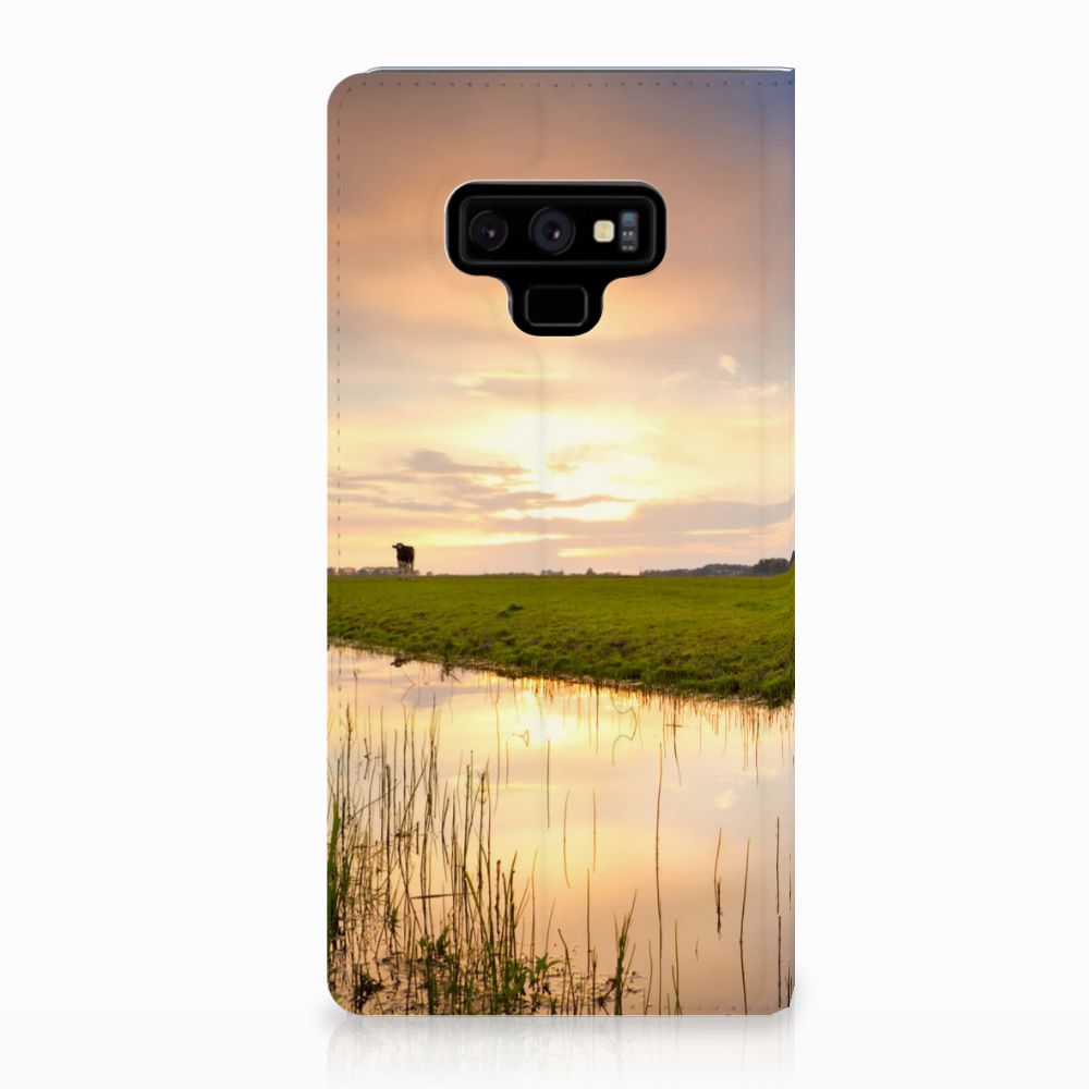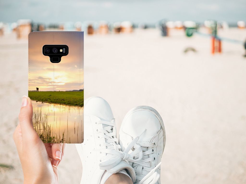 Het levert een idyllisch plaatje op, dit hoesje met een koe en ondergaande zon op de achtergrond. Door een koe buiten te laten lopen en grazen, hebben ze minder kans om ziek te worden. De Koe graast het liefst met soortgenoten, al zijn deze een stukje van de koe op de case verwijderd. Dit levert ook een mooi plaatje op, zoals je kunt zien op dit design hoesje. Deze stand case ziet er strak uit en is voorzien van verschillende uitsparingen. Een Samsung Galaxy Note 9 Hoesje maken met magneet aan de binnenzijde beschermt jouw smartphone overal. Alle zijden zijn bedrukt. Koeien hebben lange graasperioden nodig, afgewisseld door rust- en herkauwperioden. Zo goed als grazen voelt voor koeien, zo lang zal jouw design hoesje meegaan. De binnenkant van de stand case is van TPU, de buitenzijde van leer.