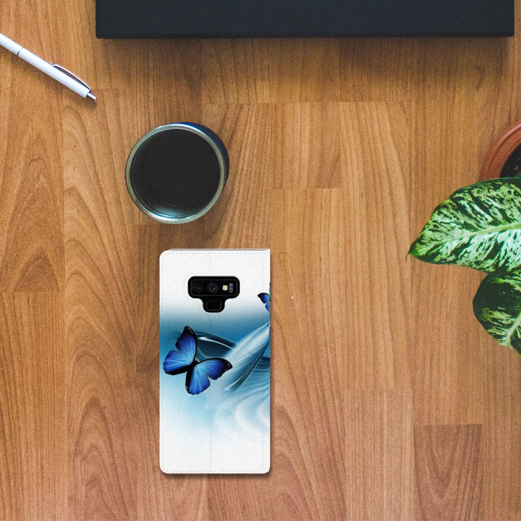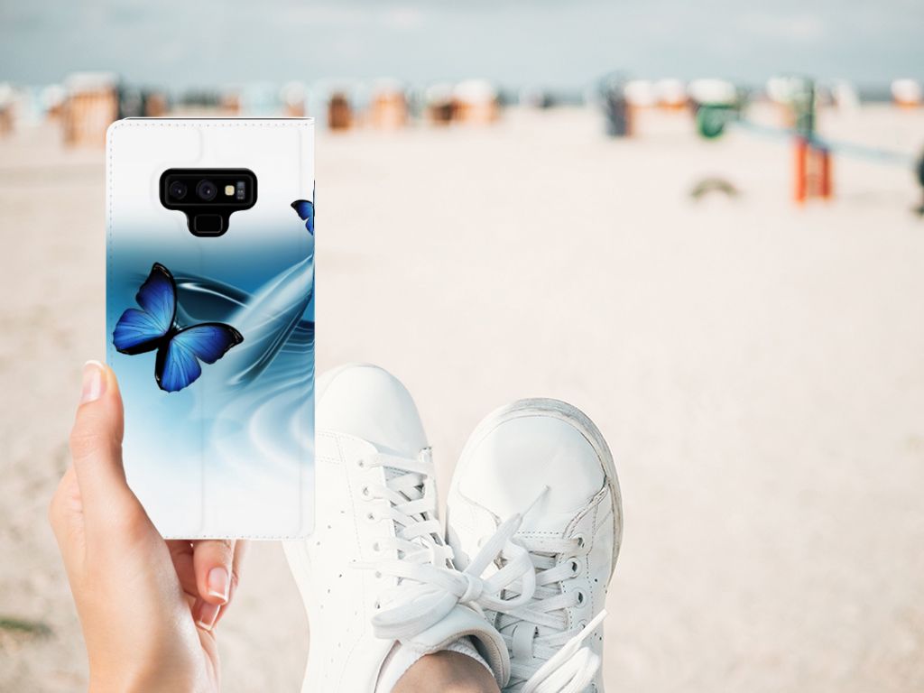 Deze vrolijke Samsung Galaxy Note 9 Hoesje maken met blauwe vlinders is een ware eyecatcher. De meeste vlinders hebben een onopvallende vleugelkleur, andere soorten hebben juist heldere en felle kleuren. Wij kunnen deze blauwe vlinders op een zeer handige stand case zetten. Deze hoesjes zijn het meest gewild. Met onze geavanceerde printer zetten we de afbeelding van vlinders op alle zijden van het hoesje. De case met vlinders heeft aan de binnenkant een houder waarin je jouw creditcard of ander pasje kwijt kunt. De case heeft bovendien een handige standaard. Verder is je telefoon natuurlijk maximaal beschermd met deze stand case met print van blauwe vlinders. De houder aan de binnenzijde van het design hoesje met vlinder print is van TPU.