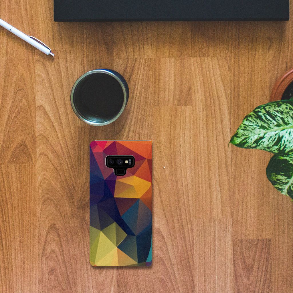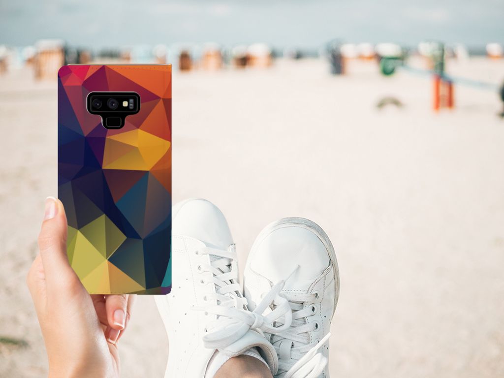 Veelkleurige driehoeken die samen eindeloze asymmetrische patronen lijken te vormen. Het is het abstracte schouwspel dat op dit fraaie hoesje voor je Samsung Galaxy Note 9 direct de aandacht trekt noemen we voor het gemak trekt noemen we voor het gemak Polygon Color. De een ziet er een berglandschap in, de ander piramides. Wat zie jij erin? Zeker is in elk geval dat de aanblik van dit fascinerende ontwerp je niet snel gaat vervelen. Het kleurige spel van lijnen en vlakken blijft eindeloos boeien en geeft jouw Stand Case een hippe en kunstzinnige uitstraling. De kracht die het lijnenspel uitstraalt, komt ook terug in het hoesje zelf. De solide hoes van PU-leer beschikt ook over een 1 pashouder en een speciale standaard. Het hoesje wordt afgesloten met een magneet aan de binnenzijde. De houder aan de binnenzijde is van TPU. Alle zijden worden bedrukt.