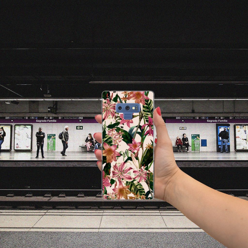 Dit Flowers design is een zegen voor de mens en zijn smartphone. De paarswitte bloemen en groene bladeren op deze Samsung Galaxy Note 9 TPU Case geven jouw smartphone een zeer sierlijke uitstraling. Je wordt er ook meteen vrolijker van als je aan het appen, mailen of aan het bellen bent. Valt dan je telefoon op de grond, dan zal er dankzij de tpu case met paarswitte bloemen en groene bladeren geen schade ontstaan. Helemaal niet als je er een screenprotector bij hebt gekocht. Onze tpu cases met paarswitte bloemen en groene bladeren zien er zeer prettig uit en zijn heel praktisch, getuige onder meer de opstaande randen en het flexibele materiaal. Alleen de achterkant van de tpu case wordt bedrukt met paarswitte bloemen en groene bladeren, de randen blijven transparant. Op deze tpu case kun je trouwens ook in no time zelf foto’s van jouw favoriete bloemen zetten.