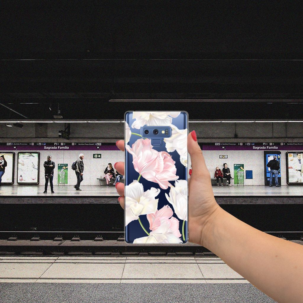 Een bosje bloemen doet een mens (en zijn smartphone) goed. De witte en roze bloemen op deze Samsung Galaxy Note 9 TPU Case geven jouw smartphone een zeer mooie uitstraling. Je wordt er ook meteen een stuk rustiger van als je aan het appen of aan het bellen bent. Valt dan je telefoon op de grond, dan zal er dankzij de tpu case met het design Lovely Flowers ontstaan. Helemaal niet als je er een screenprotector bij hebt gekocht. Onze tpu cases met roze en witte bloemen zien er zeer prettig uit en zijn heel praktisch, getuige onder meer de opstaande randen en het flexibele materiaal. Alleen de achterkant van de tpu case wordt bedrukt met roze en witte bloemen. Op deze tpu case kun je trouwens ook een eigen ontwerp zetten. In een paar simpele stappen ontwerp je zelf een stand case met daarop jouw favoriete bloemen.