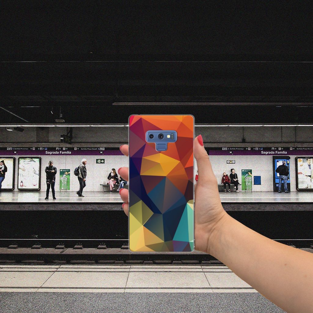 Veelkleurige driehoeken die samen eindeloze asymmetrische patronen lijken te vormen. Het is het abstracte schouwspel dat op dit fraaie hoesje voor je Samsung Galaxy Note 9 direct de aandacht trekt noemen we voor het gemak trekt noemen we voor het gemak Polygon Color. De een ziet er een berglandschap in, de ander piramides. Wat zie jij erin? Zeker is in elk geval dat de aanblik van dit fascinerende ontwerp je niet snel gaat vervelen. Het kleurige spel van lijnen en vlakken blijft eindeloos boeien en geeft jouw TPU Hoesje een hippe en kunstzinnige uitstraling. De kracht die het lijnenspel uitstraalt, komt ook terug in het hoesje zelf. Dit hoesje wordt alleen aan de bovenkant bedrukt en is zeer flexibel. De randen van het hoesje blijven transparant. Wat wil je nog meer?