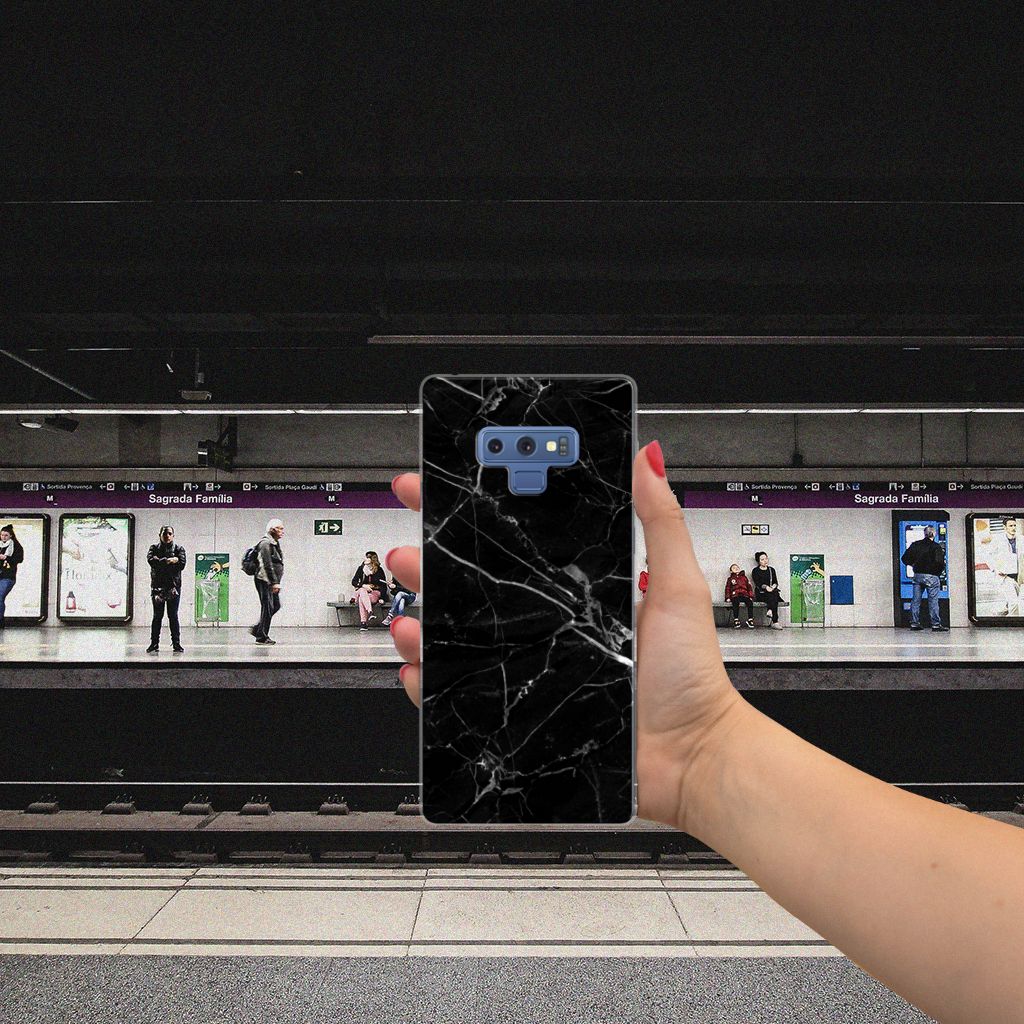 Dit design hoesje met Marmer Zwart is voor de artistieke personen onder ons. De Grieken en Romeinen wisten het materiaal al te waarderen door het in de bouw toe te passen. Naast het witte marmer met haar zacht grijze geaderde belijning zijn de diverse soorten in een gevarieerd kleurenpallet te krijgen. We hebben mooie kleuren op design hoesjes gezet, zoals in dit geval zwart marmer. Dit is een Samsung Galaxy Note 9 TPU Siliconen Hoesje met marmer in bruine kleur. Het marmer wordt bedrukt op de voorkant van een tpu case, die beschikt over opstaande randen aan de voorkant en heel goed combineert met een screenprotector van glas of van folie. De rijkdom aan kleuren en varianties in afwerking geeft ontwerpers de vrijheid om met marmer hele mooie architectonische projecten te realiseren. Wij hebben onze designer tevens veel vrijheid gegeven. Het resultaat zie je terug in deze tpu case met zwart marmer, die jouw smartphone goed beschermt. De zijkanten van de case worden niet bedrukt met het zwarte marmer.
